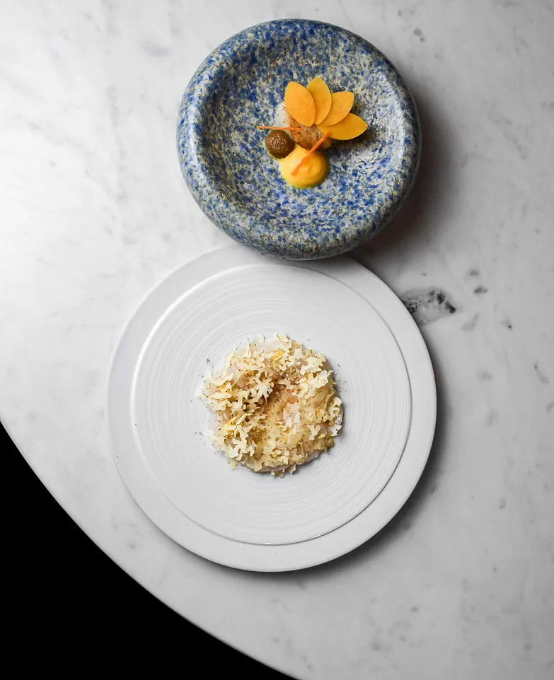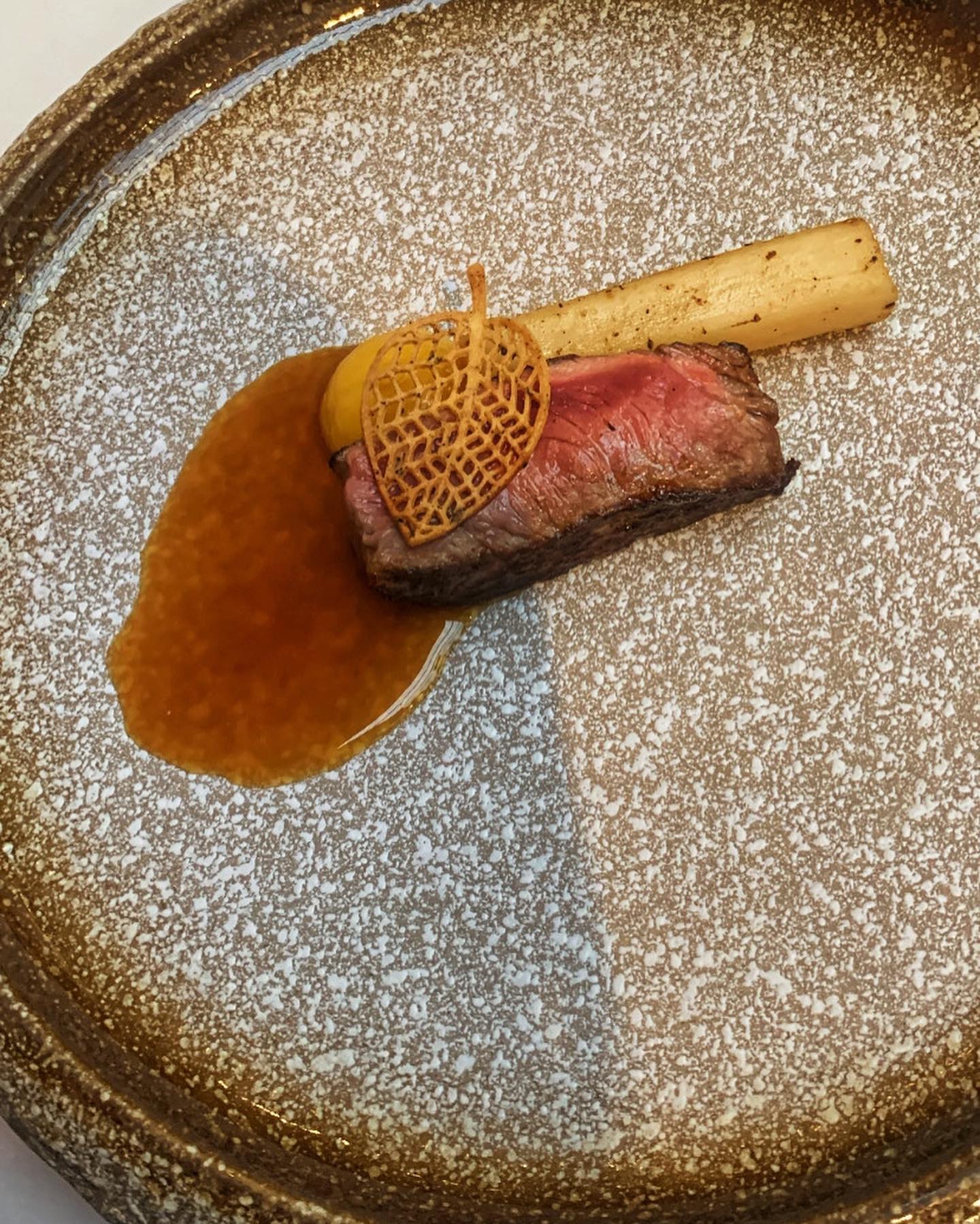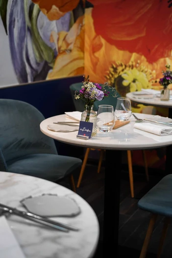 C’est en plein coeur du 17ème arrondissement, près de la place des Ternes, que l’on retrouve un adorable restaurant gastronomique du nom de Fanfan. Ici, la grande tradition française se mêle aux rituels japonais et aux ingrédients rares venant de France et d’Asie. Pour un dîner en amoureux, un déjeuner d’affaires ou des confidences entre amis, on réserve dans l’adorable salle sous verrière, à la décoration d’un goût exquis et aux peintures murales fleuries uniques en leur genre. On se laisse ensuite porter par le menu dégustation ou les suggestions du jour du Chef Alexis Bonnard, fervand défenseur d’une gastronomie simple mais d’exception, naturelle et responsable. Du Japon à la Thailande en passant par les campagnes françaises, chaque met proposé est d’une finesse rare, toujours joliment présenté entre vaisselle moderne et dressage gastronomique, tel une oeuvre d’art éphémère. Si les menus changent en fonction des humeurs et des saisons, on aime les assemblages risqués entre Dashi (bouillon japonais) Omble chevalier / Caviar Baeri / Kiwi, Carottes des sables Curry panang / Noix de coco / Choux de Bruxelles, Wagyu Japonais A5 Hokkaido Salsifi / Kumquat / Poivre ou encore création sucrée et acidulée autour du Citron /Matcha / Huile d’olive / Citron caviar. Les sauces sont délicatement versées à la dernière minute sous vos yeux et les mignardises, à l’instar d’une bouchée à la châtaigne, viennent parfaire l’expérience. On retrouve également une sélection de sakés exceptionnels. A connaître ! // It is in the heart of the 17th district, near the Place des Ternes, that we find an adorable gastronomic restaurant called Fanfan. Here, the great French tradition mixes with Japanese rituals and rare ingredients from France and Asia. For a romantic dinner, a business lunch or confidences between friends, we reserve in the adorable room under the glass roof, with exquisite decoration and unique flowery wall paintings. You can then enjoy the tasting menu or the daily suggestions of Chef Alexis Bonnard, a fervent defender of a simple but exceptional, natural and responsible gastronomy. From Japan to Thailand, passing through the French countryside, each dish offered is of a rare finesse, always beautifully presented between modern tableware and gastronomic presentation, like an ephemeral work of art. If the menus change according to moods and seasons, we like the risky assemblies between Dashi (Japanese broth) Arctic char / Caviar Baeri / Kiwi, Carrots of the sands Curry panang / Coconut / Cabbage, Japanese Wagyu A5 Hokkaido Salsifi / Kumquat / Pepper or sweet and sour creation around the Lemon / Matcha / Olive oil / Lemon caviar. The sauces are delicately poured at the last minute in front of your eyes and the mignardises like a chestnut bite complete the experience. There is also a selection of exceptional sakes. A must to know !