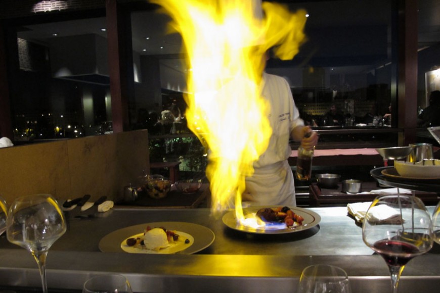 C’est l’une des expériences culinaires les plus impressionnantes et inoubliables de la capitale : le Benkay vous accueille dans son building de verre, à deux pas de Beaugrenelle et de la Tour Eiffel, dans une salle aux larges baies vitrées faisant face à la Seine. Si quelques tables classiques vous permettent de déguster une cuisine Washoku traditionnelle, le clou du spectacle du restaurant reste la cuisine Teppan Yaki où, attablés autour de la plaque chauffante, vous observez et admirez la dextérité du Chef préparant vos plats et jouant avec le feu…