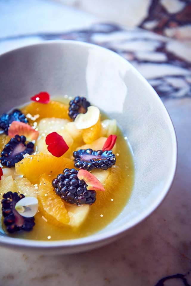 A l’époque, on pouvait y croiser Serge Gainsbourg, achetant son paquet de cigarettes à 1h du matin parmi les noctambules parisiens… Aujourd’hui, on y flâne pour dénicher un livre, un gadget High Tech et surtout, s’attabler au restaurant LE Drugstore, adresse branchée et cosmopolite comme on les aime. Avec sa terrasse XXL abritée donnant sur les Champs-Elysées et sa salle de restaurant design signée Tom Dixon, LE Drugstore vous accueille tout au long de la journée, pour un petit-déjeuner, un lunch gourmet, un sandwich sur le pouce, un tea-time, un cocktail en terrasse ou encore un dîner entre amis. On craque pour le décor feutré avec son bar lumineux, ses corners aux cuisines ouvertes « Kitchen » et « Pâtisserie » aux allures de Food Hall new-yorkais, ses fauteuils bas ultra-confortables et son utilisation du cuir, du marbre, du laiton et de la pierre omniprésente. En découvrant la carte imaginée par le Chef étoilé Eric Frechon (Le Bristol, le Mini Palais), le choix s’avère cornélien ! Nous vous conseillons donc de commencer par quelques assiettes de « Finger Food » à partager entre madeleines au gruyère suisse et vieux parmesan pour les « cheezy addicts », beignets de gambas, houmous et incroyables Tempura de maïs saupoudrées de tandoori, une création originale qui se grignote sans faim, mélange hybride entre le beignet et le pop-corn. Toute la journée, le restaurant propose des assiettes classiques entre burgers, tartares, plateaux d’huîtres (fraîches, généreuses et délicieuses), club sandwich et salades. Pour un repas plus élaboré, on retrouve une carte inédite qui travaille les mêmes ingrédients en cru ou en cuit, selon les envies. Nos recommandations ? Le Carpaccio de gambas, le poulet pané aux cacahuètes/corn flakes/sauce cajun, l’amusant Fish & Chips signature où les frites enrobent directement le poisson ou encore la sélection de Viandes de Collection (Bœuf Angus irlandais, bœuf Wagyu du Japon…). Surtout, gardez une place pour le dessert avec en tête de liste, le millefeuille signature du restaurant, l’île flottante aux pralines roses, les fraises à la meringue et notre chouchou : la demi-mangue fraîche et fondante, rôtie au caramel, accompagnée de fruit de la passion frais et d’un sorbet au yaourt, addictif ! Mention spéciale également pour le service jeune et disponible. Un 20/20.