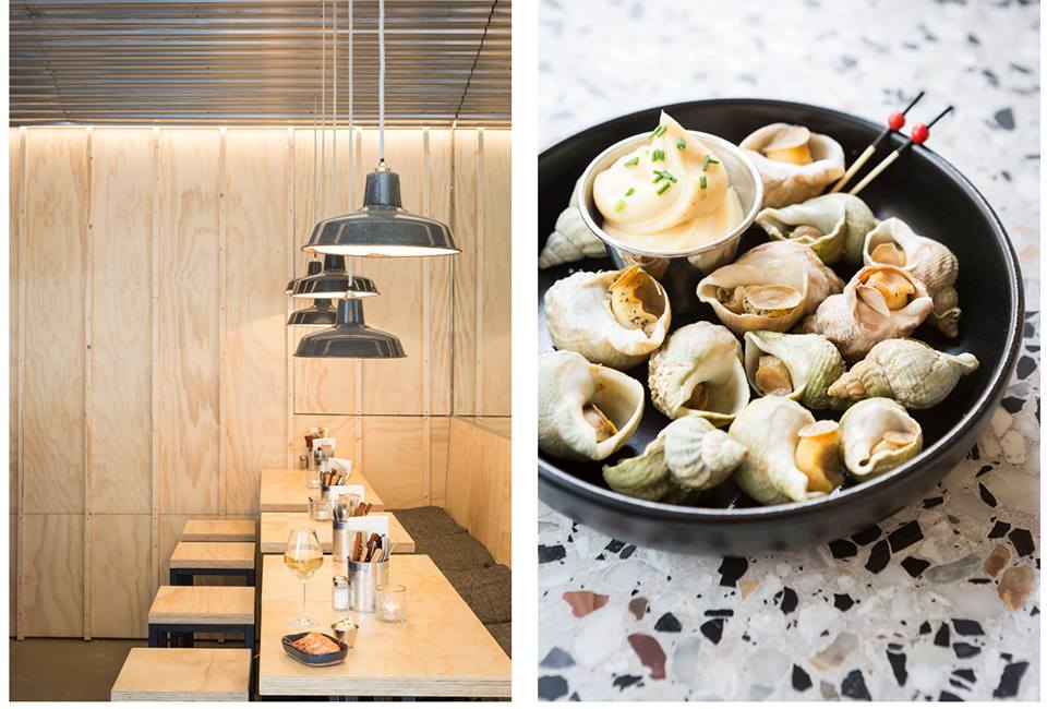 Une folle envie de fruits de mer et poissons vous prend ? Vous souhaitez déguster quelques huîtres et un Lobster Roll avant un concert au Trianon, à la Cigale, à La Boule Noire ou à l’Elysée Montmartre ? Direction Bulot Bulot, le spot marin de Montmartre, niché en haut de la célèbre rue des Martyrs. Sur la petite terrasse, le long du beau bar bleu roi ou en hauteur autour des tables en bois, façon cabanon de pêcheur, on commence par siroter un cocktail maison imaginé par Margot Lecarpentier, fondatrice de COMBAT (Belleville), à l’image du « Granville Spritz » (Saint-Germain, Sherry fino, Suze, jus de citron frais et vin pétillant naturel.) Puis, on poursuit avec un verre de vin bio autour de suggestions fraîches à tomber. Nos coups de coeur ? Le Crab Roll maison, l’incroyable Tarama maison (nature, corail d’oursin ou truffe), la japonisante anguille fumée aux portes de Paris au bois de hêtre par la maison familiale Safa et les planches d’huîtres « Petit/Grand/Mega Chelem » pour alterner entre douceur, mâche et iode. Côté desserts, on retrouve les incontournables de Rachel’s Cake entre tarte au citron vert meringuée et cheesecake aux myrtilles. Pour un dîner entre amis à la maison ou un pique-nique dans les hauteurs de Montmartre, la vente à emporter est également disponible ! Mention spéciale également pour les petits crochets bien pratiques permettant d’accrocher manteaux et casques sous vos tables ainsi que pour l’excellent pain accompagnant ces produits de la mer.