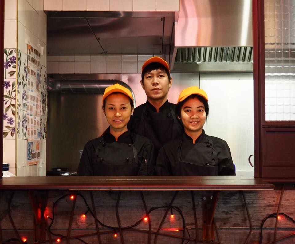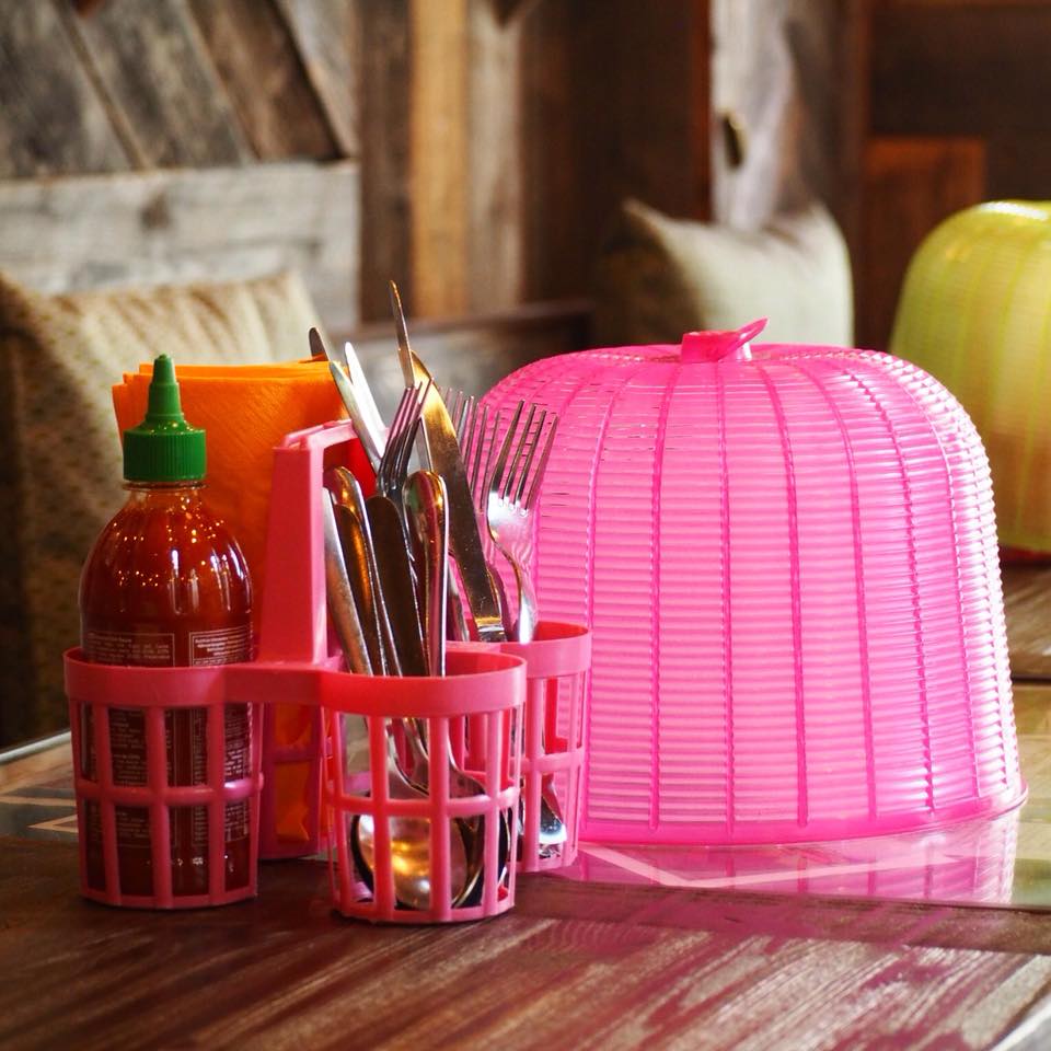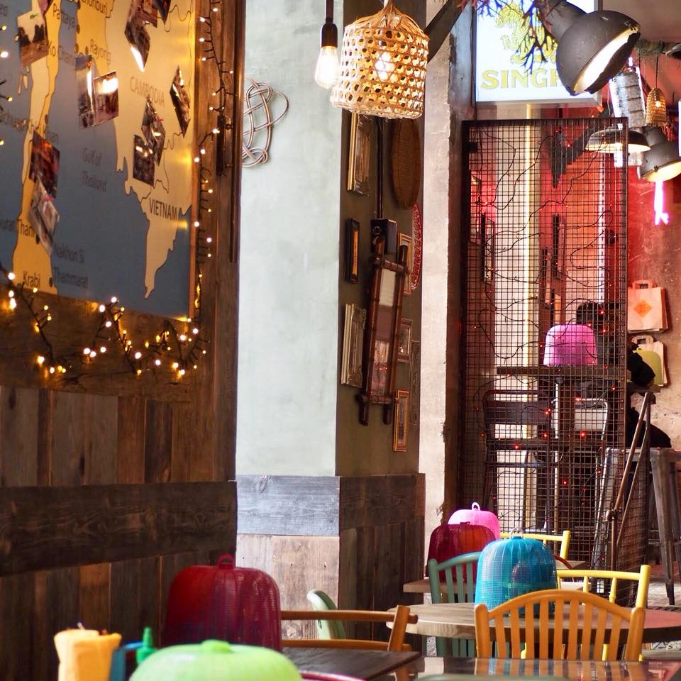 You feel like traveling while staying in Paris ? You’re walking around Grands Boulevards and are looking for an original restaurant for a diner between friends ? Kill two birds with one stone and push the doors of Yaai Thaï,  brand new Thai restaurant (Bonne Nouvelle subway). If the few tables on the terrace have nothing to do with the indoor design, enter the restaurant’s doors for a one-way ticket to Bangkok’s streets, as if you were in Thailand ! Picture yourself on vacation and seat around the standing tables facing the open kitchen/wok or on a bench in a setting with climbing plants recalling the huts from Thailand beaches. Wherever the eye falls, the escape is total between Thailand traffic signs, luminous billboards (Coca-Colas, 7-Eleven), neon lights, lanterns and furniture from Asia. On the menu, salads, currys, fried noodles and other Thai classics by the Chef Jay. No mentioning the exotic homemade cocktails, with or without alcohol, but always strong and fruity ! Our crushes ? The basket of starters to split (gyoza, spring rolls, delicious slices of grilled beef, steamed specialties, brochettes…), the Kaï Phad Med (slices of fried chicken with cashew nuts and black mushrooms), the Tom Kha soup with coco milk, the red curry, the Pad Thai and the sticky rice with fresh mango. Most of the dishes allow you to choose between a beef, chicken, vegetables or shrimp version. As for the playlist, the music goes from 50 Cent to Pharrell passing through the Funk and Disco classics from the 80’s. Other restaurants should be opened quickly in Paris, notably in the 14th District.