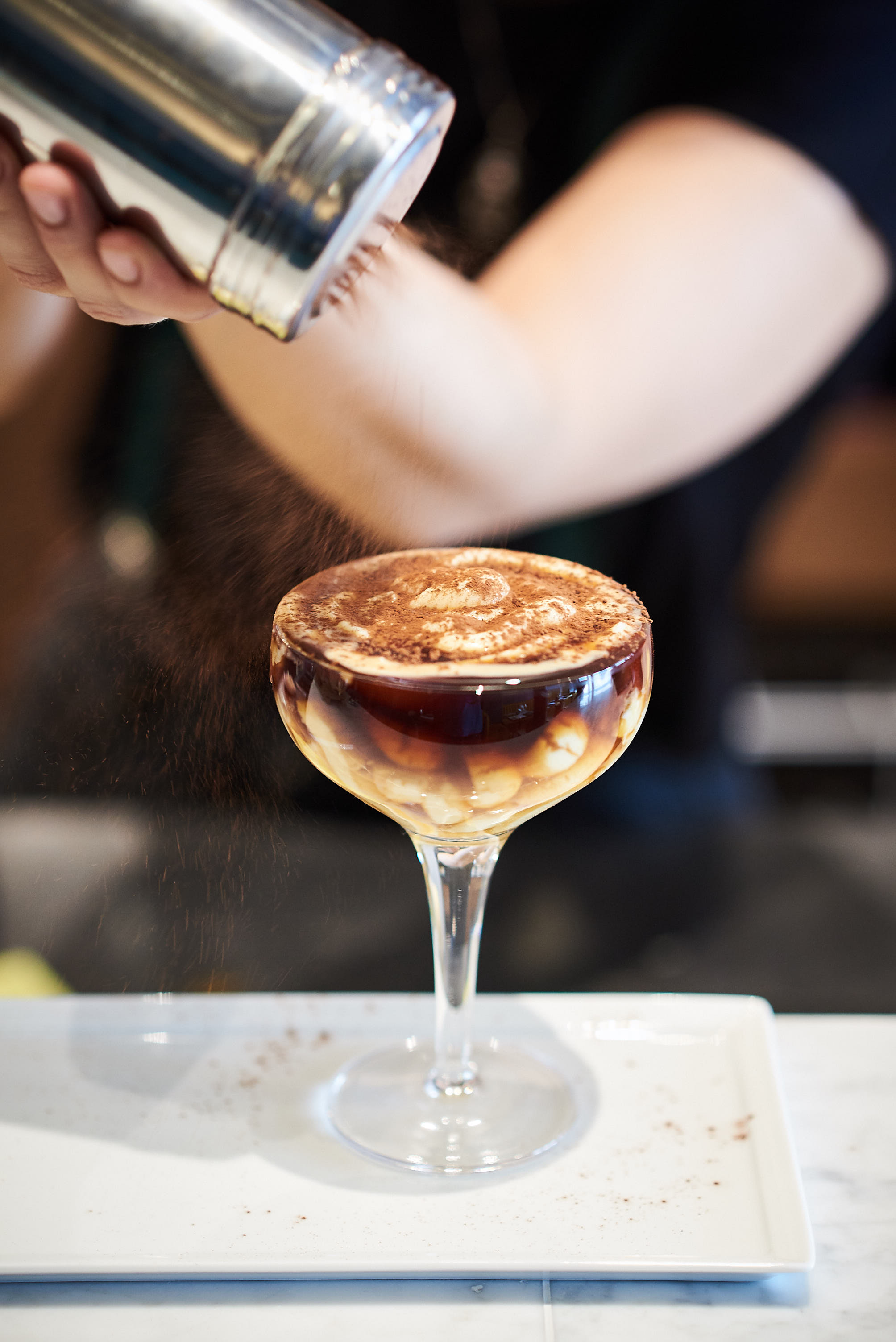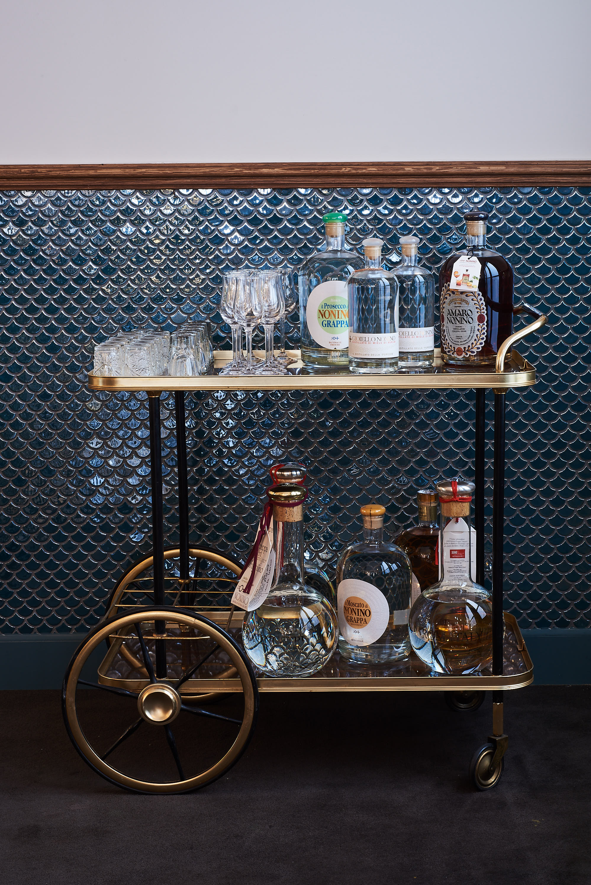 If you’re an Italian food lover but are looking for more original dishes than the traditional Carbonara pasta, book a table at Damigiana, the new Double D (design and delicious) address located few steps away from Louvre Street. This confidential restaurant by Laura and Bastien Corinti, both from the Province of Parma, welcomes a gastronomic table but also a wine cellar for the greatest enjoyment of the top-of-the-range Italian wine lovers (special mention to the gold medalist Chianti). Here, you’re sitting in a contemporary setting between wood, marble, yellow gold and deep water blue, looking at the large bar and its several bottles on the walls as well as the ceiling where giant Prosciutti di Parma are hanging on old butcher hooks. Young and friendly, the staff is also 100% Italian with its wonderful accent and raw dynamism. If the menu is quite short, it is full of bold proposals, highlighting products directly unearthed in Italy, and the pasta are obviously homemade. The owners tell : « We are really proud of the products we’ve unearthed on small Italian producers lands, that we import directly. Our Chianina bresaola, from the Bologna region, for example, is a rare product that we’ve been looking for during a long time… » Our crushes ? The really fine Italian cured meats, the addictive black venere rice with its fried octopus and peas cream, the really gourmet ravioli mixing pecorino cheese with beetroot, pancetta, onions and fresh herbs and the ribbon noodles with their re-visited « Bolognese » sauce with wild boar meat stew… a delight ! As for the desserts, we love the homemade traditional tiramisu served in a Mug to enjoy with an homemade « Italian Coffee » cocktail (see pictures) or the liquor trolley. Enjoy !