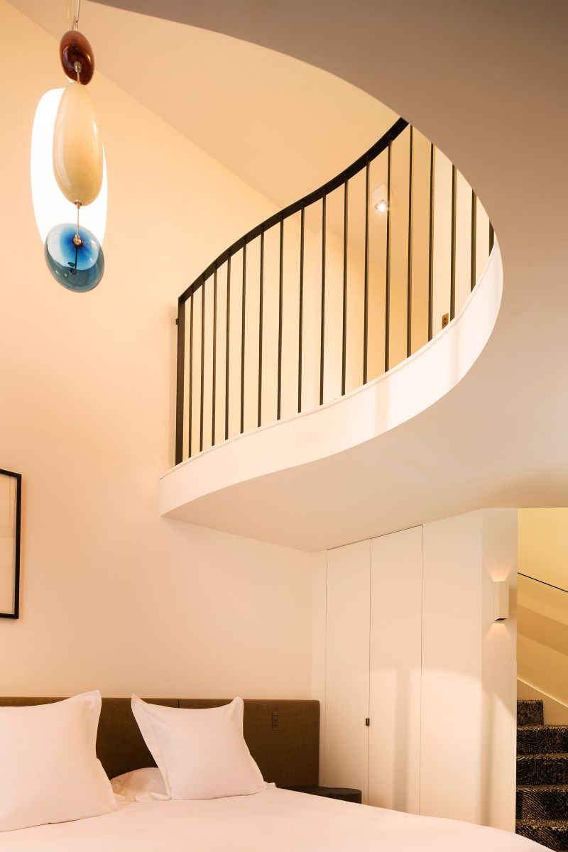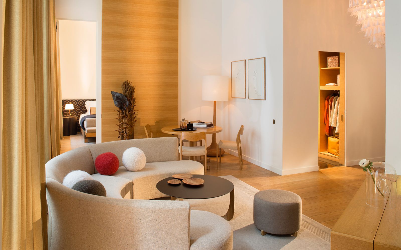 Pour une escapade parisienne au cœur du Triangle d’Or, on délaisse les traditionnels palaces des avenues Montaigne et George V à la faveur d’un 5 étoiles beaucoup plus confidentiel, voisin immédiat des artères les plus prestigieuses de la capitale. A l’Hôtel Marignan Champs-Elysées*****, pas de concierge désuet qui guette mais une porte d’entrée aussi monumentale qu’intrigante, chic au possible avec ses dalles noires encadrées de plantes vertes géantes. Une fois les portes franchies, place à une réception grandiose où les oeuvres d’art sont reines. On en oublie presque les Champs-Elysées voisins pour s’imaginer au cœur d’une villa de maître à Bali ou Ibiza… Premier coup de cœur : l’ambiance musicale de l’hôtel signée Michael Canitrot, DJ parisien incontournable depuis le début des années 2000, passé par Les Bains et le Queen, ayant déjà collaboré avec la Tour Eiffel, l’Olympia, Chanel, Dior, Prada ou encore Cartier. Au Marignan, il propose un univers Soul et Nu-Jazz des plus attractifs, souvent cinématique, entre Ari Lennox, Snoh Aalegra, GoldLink, Woodkid, Majid Jordan mais aussi Sabrina Claudio, Jorja Smith et FKJ ! // For a Parisian getaway at the heart of the Golden Triangle, forget about the traditional Palaces on Montaigne and George V avenues and choose a more confidential five-star hotel, immediate neighbor of the most prestigious Paris streets. At the Hotel Marignan Champs-Elysées*****, no creepy concierge waiting for you but, a front door as monumental as intriguing, really chic with its black tiles surrounded by giant green plants. Once the door crossed, you will love the majestic reception hall full of masterpieces. You almost forget about the Champs-Elysées next door to imagine yourself into a superstar villa in Ibiza or Bali…. First crush : the hotel’s musical atmosphere by Michael Canitrot, a really famous Parisian DJ since the early 2000’s, who already worked for Les Bains Douches, the Queen, the Eiffel Tower, the Olympia, Chanel, Dior, Prada and Cartier. At the Marignan, he introduces a really attractive Soul and Nu-Jazz universe, sometimes cinematic, between Ari Lennox, Snoh Aalegra, GoldLink, Woodkid, Majid Jordan but also Sabrina Claudio, Jorja Smith and FKJ !