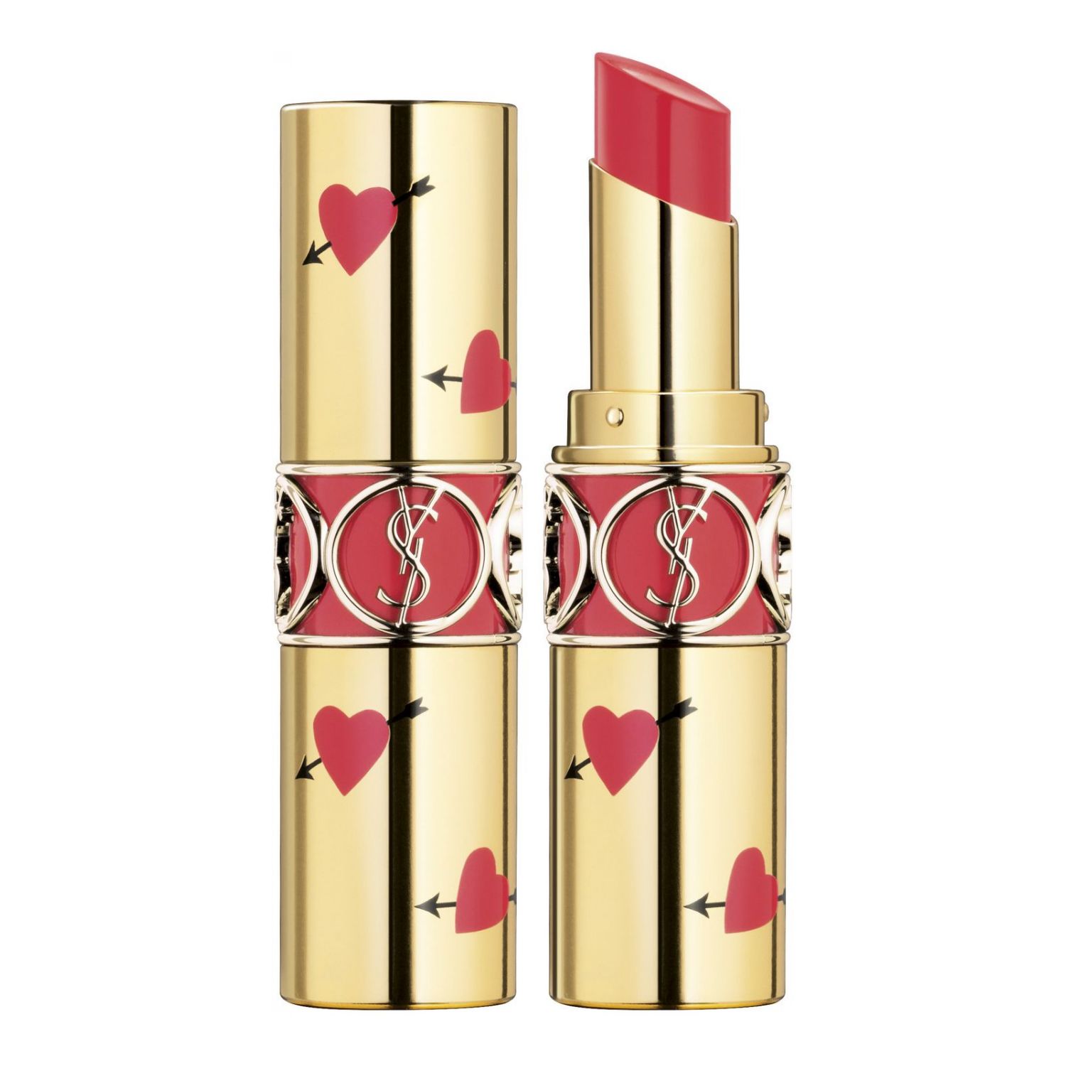 Rouge à lèvres (lipstick) « Rouge Volupté Shine Oil-In-Stick » par Saint Laurent – Idéal pour la Saint-Valentin avec son écrin aux petits cœurs (perfect for Valentine’s Day with its case full of hearts) – Hydratation longue durée (long-lasting hydration) – 36.50 euros