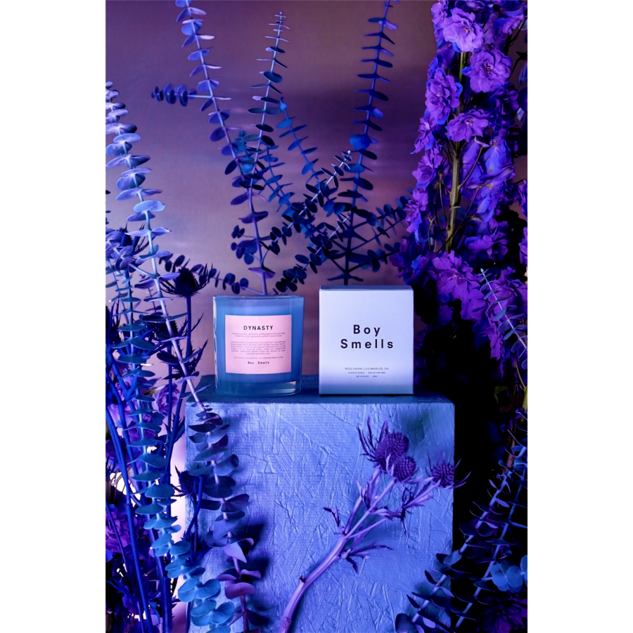 Bougie (candle ) « DYNASTY » by Boy Smells – Senteurs de rhubarbe, bois, cyclamen, poivre rose et tulipe (rhubarb, woods, cyclamen, pink peppercorn and tulip) – 30 euros