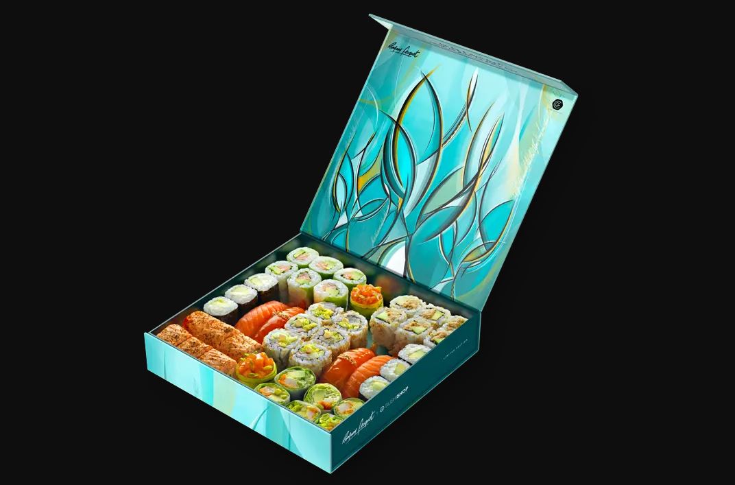 Les « Trees Box », ce sont les nouveaux coffrets signés Sushi Shop en collaboration avec l’artiste peintre et dessinateur Romain Froquet, célèbre pour ses fresques urbaines monumentales où la symbolique de l’arbre est omniprésente. Le concept ? Une box illustrée et garnie de sushis estivaux, frais et originaux, dont les ventes contribuent à transformer une parcelle abandonnée en un écosystème verdoyant. En effet, Romain Froquet et Sushi Shop se sont associés pour planter 2 500 arbres en France ! A l’intérieur, 2 sushis classiques au saumon, 2 sushis au saumon Teriyaki (un délice), 6 makis cheese-avocat, 6 California au thon cuit-avocat (miam !), 6 spring saumon-avocat à la menthe et coriandre, 6 california au saumon « Aburi » épicés ainsi que trois nouveautés : 6 California Yellowtail Ponzu de saison avec leur pomme et sucrine croquantes, 2 Teriyaki Salmon Tulip au tartare de saumon et 6 Spring Chicken Curry au poulet pané ! (42 pièces – 45€) // The « Trees Box » are the new boxes designed by Sushi Shop in collaboration with painter and draftsman Romain Froquet, famous for his monumental urban murals where the symbolism of the tree is omnipresent. The concept ? An illustrated box filled with fresh and original summer sushi, whose sales contribute to transforming an abandoned plot into a green ecosystem. Indeed, Romain Froquet and Sushi Shop have joined forces to plant 2,500 trees in France ! Inside, 2 classic salmon sushi, 2 Teriyaki salmon sushi (a delight), 6 avocado and cheese maki, 6 avocado-tuna California (yummy!), 6 avocado salmon spring with mint and coriander, 6 spicy « Aburi » salmon california rolls and three new products : 6 seasonal California Yellowtail Ponzu with their crispy apple and salad, 2 Teriyaki Salmon Tulip with salmon tartare and 6 Spring Chicken Curry with breaded chicken ! (42 pieces – 45€)