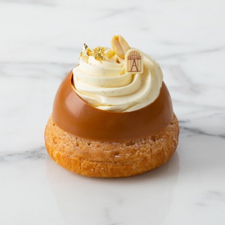 Pour la saison printemps-été 2019, Angelina, célèbre pâtisserie parisienne – dont l’adresse rue de Rivoli ne désemplit jamais pour les fans de Mont-Blanc et chocolat chaud- propose de nouvelles créations entre fraisier, Mont-Blanc à la cerise et tarte fraise-verveine. Notre favorite ? Le chou au caramel et à la cacahuète avec son cœur coulant, sa chantilly à la vanille et son chocolat au lait caramélisé. (environ 7 euros) // For the spring/summer 2019 season, Angelina, famous Parisian pastry shop – whose address rue de Rivoli is always full for Mont-Blanc and hot chocolate fans – is offering new creations between strawberry cake, Mont-Blanc with cherry and strawberry-vervain tart. Our favorite ? Caramel and peanut puff with its flowing heart, vanilla whipped cream and caramelized milk chocolate. (about 7 euros)