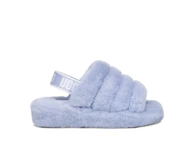 Sandale fourrée « Fluff Yeah » par UGG (stuffed sandal) – Aussi confortable qu’un chausson (As comfortable as a slipper) – Petite plateforme ( Small platform) – 119,95 €