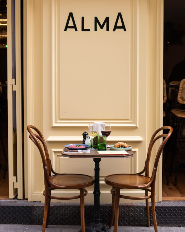 Direction le cœur du Sentier pour notre nouvelle adresse coup de cœur de la rentrée : ALMA, un restaurant corse au rapport qualité/prix imbattable. Après L’Alivi et Chez Minnà, Saveriu Cacciari donne vie à ce nouveau « place-to-be » où le service est aussi efficace que chaleureux, vous accueillant comme une bande d’amis. Une atmosphère festive que l’on retrouve sur le plan musical avec un Dj sous l’olivier et une équipe qui n’hésite pas à sortir sa guitare pour un bœuf improvisé en fin de soirée. Côté décoration, on apprécie les banquettes couleur terracotta, les tables hautes avec leurs chaises en osier et les guirlandes de lumières au plafond mettant en valeur les jeux de miroirs en forme de croix et leur végétation grimpante. On commence les festivités avec un cocktail maison bien fruité puis on poursuit le repas en se partageant quelques assiettes entre créations originales, charcuteries et fromages corses (saucisson de sanglier, Lonzu, Coppa, Prisuttu, tome corse, brousse…). Nos coups de cœur ? Les très addictifs beignets de courgettes avec leur sauce yaourt/miel, les irrésistibles travers de porc, les très gourmands gnocchis xxl à la crème de truffe et les pilons de poulet frits KFC (Korsica Fried Chicken). On retrouve également des œufs bio mollets et panés à la mayonnaise ou encore des bruschettas figues/brousse/coppa/miel Corse. Côté desserts, on vous conseille l’un des meilleurs fondants au chocolat/noisette de la capitale ou, surtout durant le brunch du dimanche, les pancakes à la châtaigne. Un sans faute !