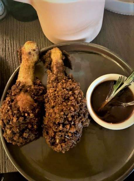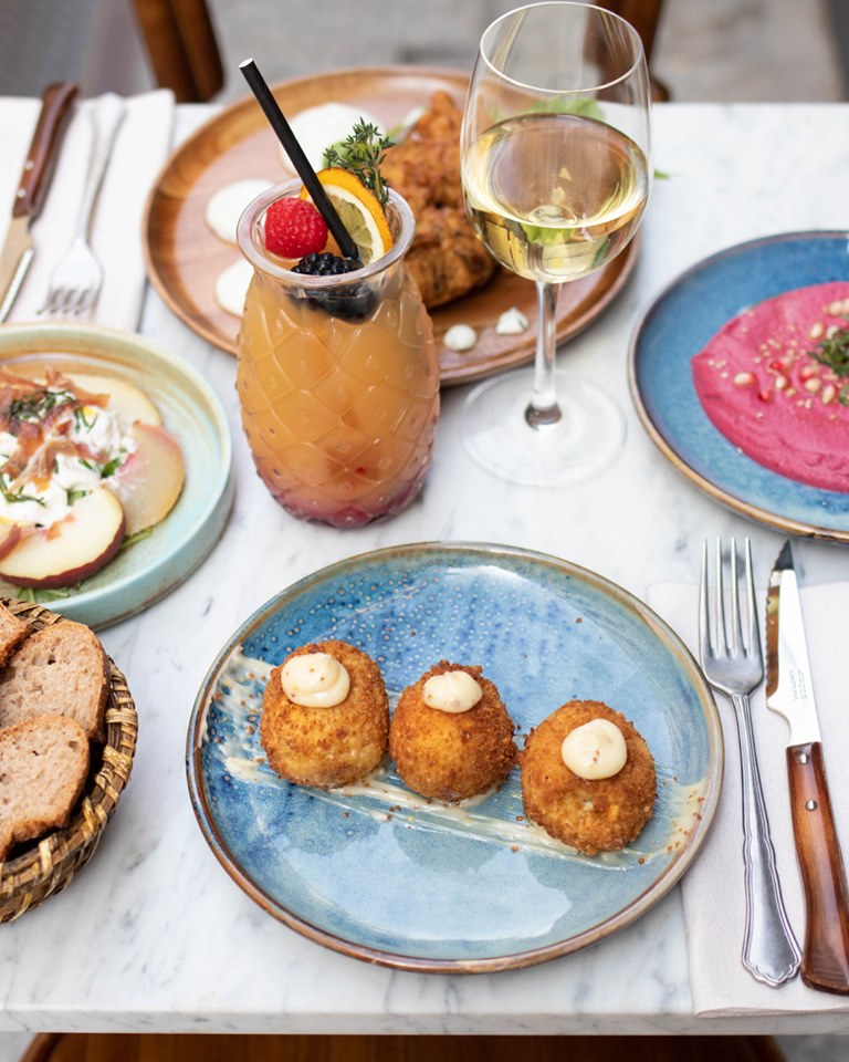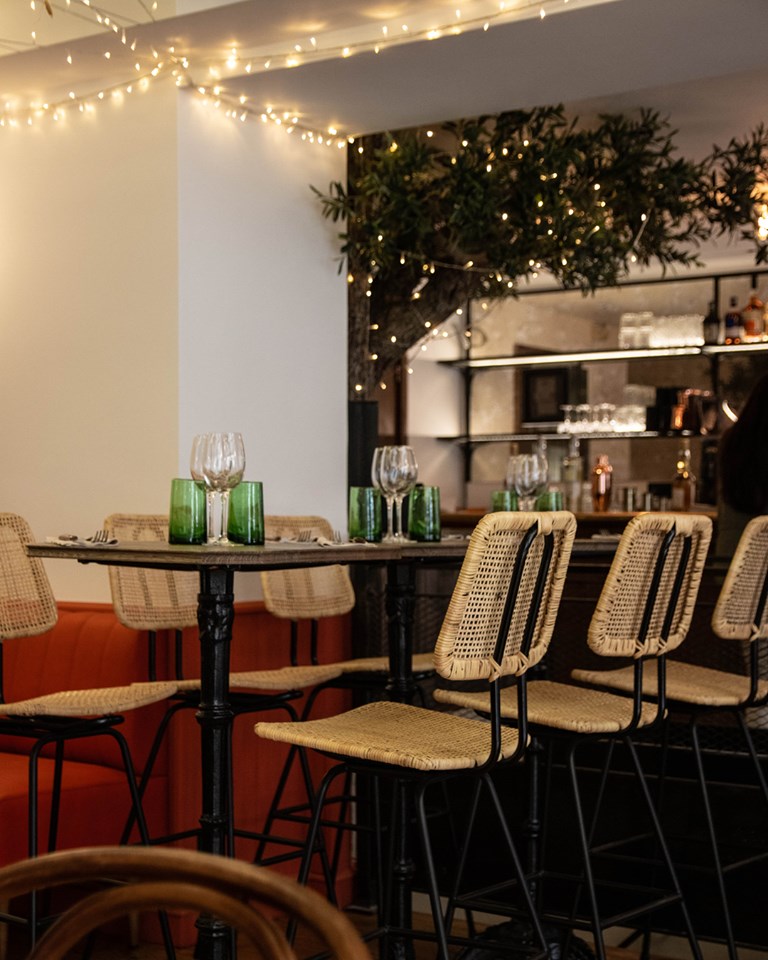 Let’s head to the heart of the Sentier for our new favorite address this autumn : ALMA, a Corsican restaurant with an unbeatable price/quality ratio. After L’Alivi and Chez Minnà, Saveriu Cacciari gives life to this new « place-to-be » where the service is as efficient as it is warm, welcoming you like a group of friends. A festive atmosphere that can be found musically with a DJ under the olive tree and a team that does not hesitate to bring out its guitar for an improvised show in the late evening. As for decoration, we appreciate the terracotta-colored benches, the high tables with their wicker chairs and the garlands of lights on the ceiling highlighting the play of mirrors in the shape of a cross and their climbing vegetation. We start the festivities with a fruity homemade cocktail and then we continue the meal by sharing some dishes between original creations and Corsican cheeses and delicatessen meats (wild boar sausage, Lonzu, Coppa, Prisuttu, Corsican tome…). Our favorites ? The highly addictive courgette fritters with their yogurt/honey sauce, the irresistible pork ribs, the very gourmet gnocchi xxl with truffle cream and the fried chicken drumsticks KFC (Korsica Fried Chicken). There are also organic soft-boiled and breaded eggs with mayonnaise or fig/brousse/coppa/corsican honey bruschettas. For desserts, we recommend one of the best chocolate and hazelnut cake in the capital or, especially during Sunday brunch, chestnut pancakes. One without fail !