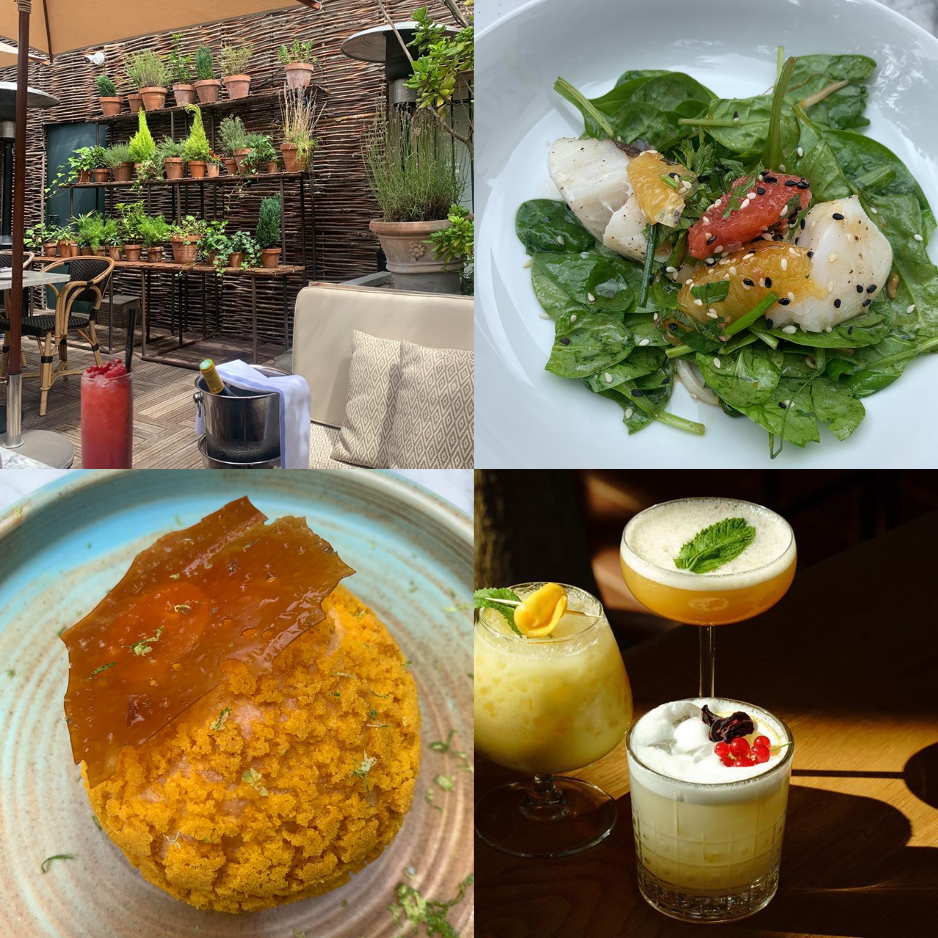 Les terrasses sur trottoirs parisiens ont certes leur charme mais vous rêvez de dépaysement tout en restant très proche de Paris ? Réservez sans plus attendre une table en terrasse chez Eugène Eugène, le plus beau restaurant de Puteaux avec ses grands volumes sous serre. Installez-vous confortablement autour d’une chaleureuse table ronde ou sur un moelleux canapé en rotin et commandez un cocktail estival (avec ou sans alcool) à l’instar du « Dattes & Stormy » (Rhum Kraken, sirop de datte maison, citron vert, ginger beer) ou encore du « Yellow Submarine » (Vodka Smirnoff, cointreau, purée de mangue, jus de passion, yaourt grec). Profitez du soleil ou de l’ombre des parasols, humez le laurier et la sauge et surtout, régalez-vous avec les suggestions de cet été entre délicieuses ravioles végétariennes à la ricotta/antipasti/parmesan/mascarpone, ceviche de dorade très frais, salade de bœuf maturé/sauce chien/chou/cacahuètes, cabillaud parfaitement cuit et nacré sur pousses d’épinard et agrumes avec son irrésistible huile de sésame par le Chef Jérémy Mathieu. Côté desserts, on vous conseille la très bonne tarte fraise-basilic ou le très Instagramable chou au citron et à la noisette. Une adresse incontournable ! // Parisian sidewalk terraces certainly have their charm, but you dream of a change of setting while remaining very close to Paris ? Book without further delay a table on the terrace at Eugène Eugène, the most beautiful restaurant in Puteaux with its large volumes under glass. Settle down comfortably around a warm round table or on a soft rattan sofa and order a summer cocktail (with or without alcohol) such as « Dates & Stormy » (Kraken rum, homemade date syrup, lime, ginger beer) or « Yellow Submarine » (Smirnoff vodka, cointreau, mango purée, passion fruit juice, Greek yogurt). Enjoy the sun or the shade of the umbrellas, smell the laurel and sage and above all, treat yourself to this summer’s suggestions between delicious vegetarian ravioli with ricotta/antipasti/parmesan/mascarpone, very fresh sea bream ceviche, mature beef salad/dog sauce/cabbage-peanuts, perfectly cooked and pearly cod on spinach shoots and limes with its irresistible sesame oil by Chef Jérémy Mathieu. For desserts, we recommend the very good strawberry-basil tart or the very Instagramable cake with lemon and hazelnut. An address you can’t miss !