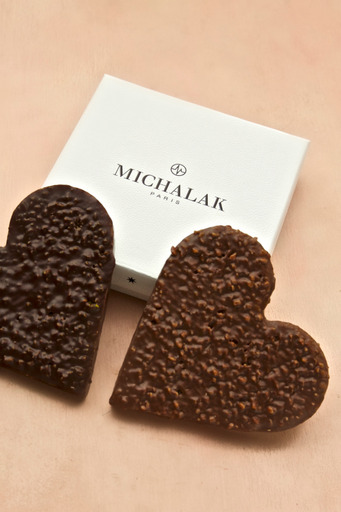 Christophe Michalak – COFFRET DOUBLE COEUR PRALINES (pecan praline heart with milk chocolate coating and hazelnut praline with dark chocolate coating) – 20 €