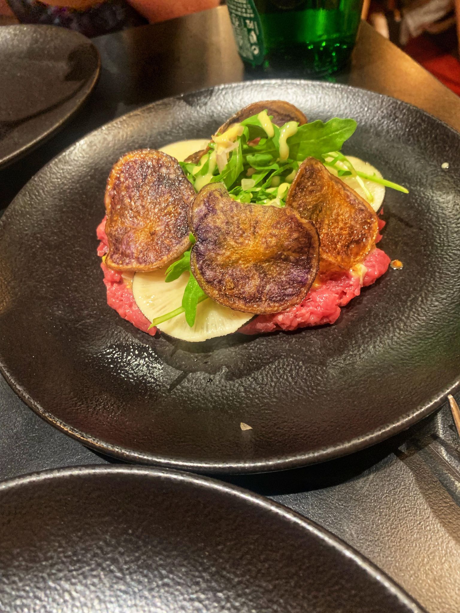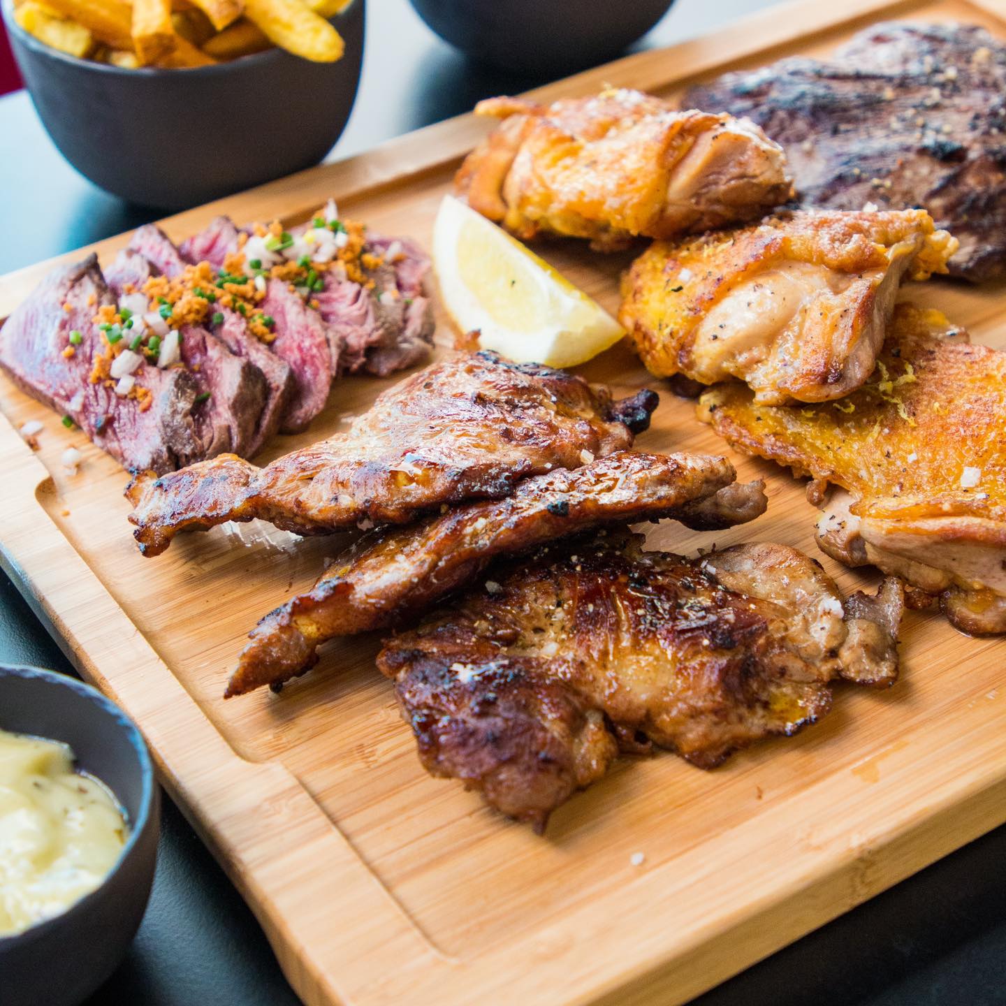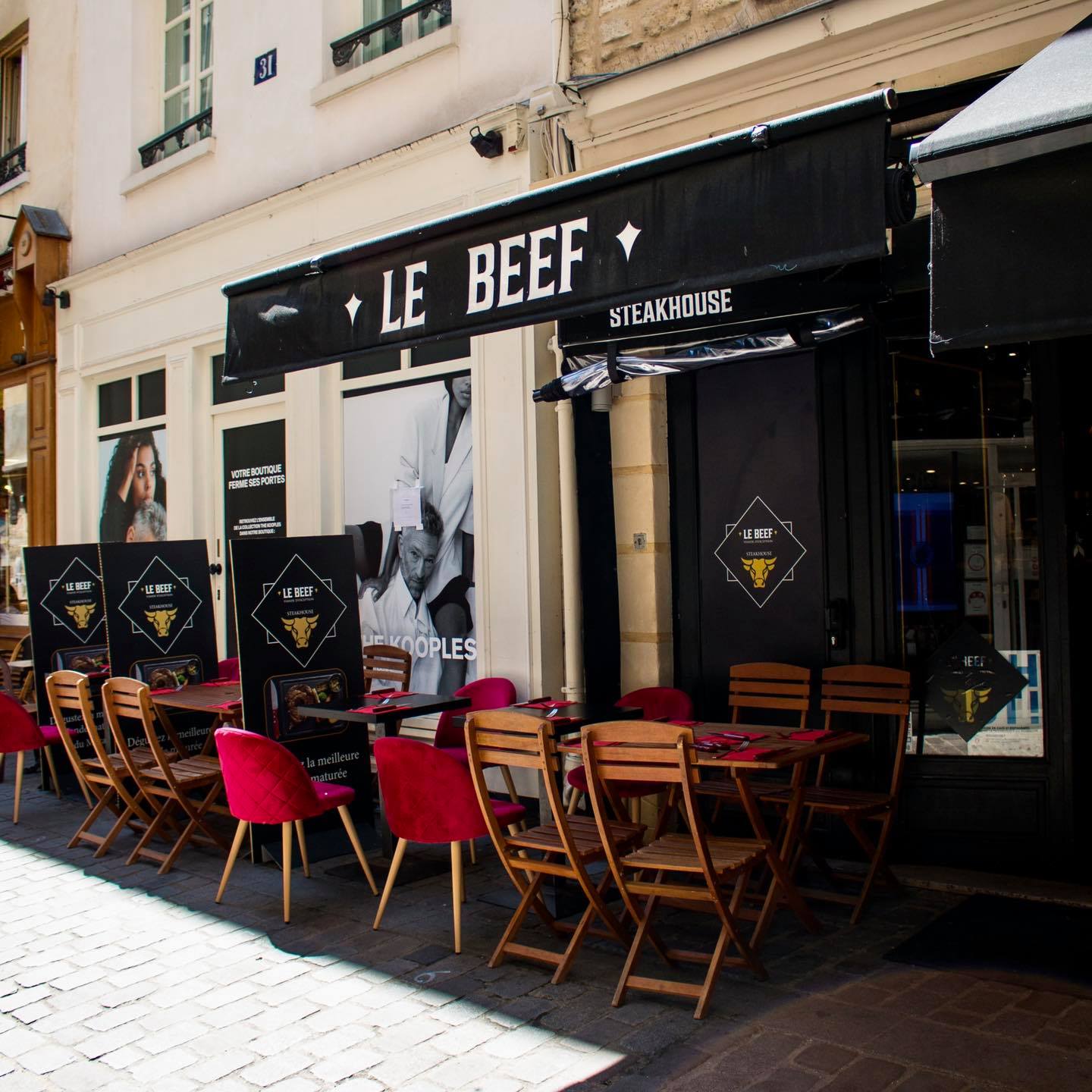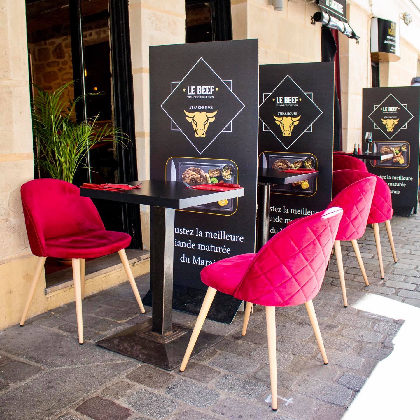 C’est notre nouvelle cantine dans le Marais lorsqu’il s’agit de s’offrir une bonne viande en couple ou entre amis. Dans la célèbre rue des Rosiers, le Chef franco-israélien Daniel Renaudie et son équipe formidable vous accueillent dans une petite salle conviviale aux fauteuils rouges et poutres apparentes. Si les belles pièces de viandes maturées sont légion, on ne se prive pas d’une très bonne entrée originale entre feuille de brick orientale en forme de cigare farcie de bœuf à la provençale (une tuerie) et belle boule de Brie de Meaux panée. Puis, à l’instar des plus grands steakhouses américains, on choisit sa pièce de viande, sa cuisson idéale avec sa sauce et son accompagnement. Difficile de choisir parmi la délicieuse entrecôte maturée sur carcasse, la bavette fondante, le steak haché ultra régressif mais sans équivalent sur la capitale ou encore la plus insolite araignée de veau et le shawarma cuisiné à la française (beurre, ail, persil, romarin, oignons). On accompagne le tout de frites Maison croustillantes et fondantes à la mode d’Amsterdam ou d’une très gourmande purée liée à l’emmental. Sans oublier les sauces Maison avec un coup de cœur absolu pour celle aux champignons avec sa touche de vin ainsi que pour celle au curry. Pour les carnivores expérimentés ou les groupes, on retrouve également de belles assiettes variées à partager. Côté desserts, on reste dans l’ultra gourmandise avec, par exemple, des tartes (au crack ou presque…), tiramisus aux agrumes et brownies réconfortants pour l’hiver. Une adresse de choix qui collabore avec le groupement d’éleveurs « Le Bœuf Éthique » qui s’engage pour le respect et le bien-être animal de la naissance à l’abattage. Ils fournissent ainsi au consommateur une viande de qualité, et participent également à garantir une juste rémunération aux éleveurs.  // This is our new cantine in the Marais when it comes to a good meat with your partner or friends. In the famous rue des Rosiers, the Franco-Israeli Chef Daniel Renaudie and his wonderful team welcome you in a small friendly room with red armchairs and exposed beams. If the beautiful pieces of matured meats are legion, you can’t go without a very good and original starter between an oriental brick leaf in the shape of a cigar stuffed with beef à la provençale (a killer) and a beautiful ball of breaded Brie de Meaux. Then, like the greatest American steakhouses, you choose your piece of meat, its ideal cooking with its sauce and its accompaniment. It’s hard to choose between the delicious entrecote matured on the carcass, the melting flank steak, the ultra regressive ground steak but without equivalent in the capital or the more unusual veal spider and the shawarma cooked in the French way (butter, garlic, parsley, rosemary, onions). We accompany the whole with crispy and melting homemade fries in the style of Amsterdam or a very greedy mashed potato with Emmental cheese. Not forgetting the homemade sauces, with a special mention for the mushroom sauce with a touch of wine and the curry sauce. For the meat lovers or groups, you can also order big plates to share with various pieces of meat. As for desserts, we remain in the ultra greedy category with, for example, tarts (with crack or almost…), citrus tiramisu and comforting brownies for the winter. A choice address that collaborates with the group of breeders « Le Bœuf Éthique » which is committed to respect the animal welfare from birth to slaughter. They provide the consumer with quality meat, and also participate in guaranteeing a fair remuneration to the breeders.