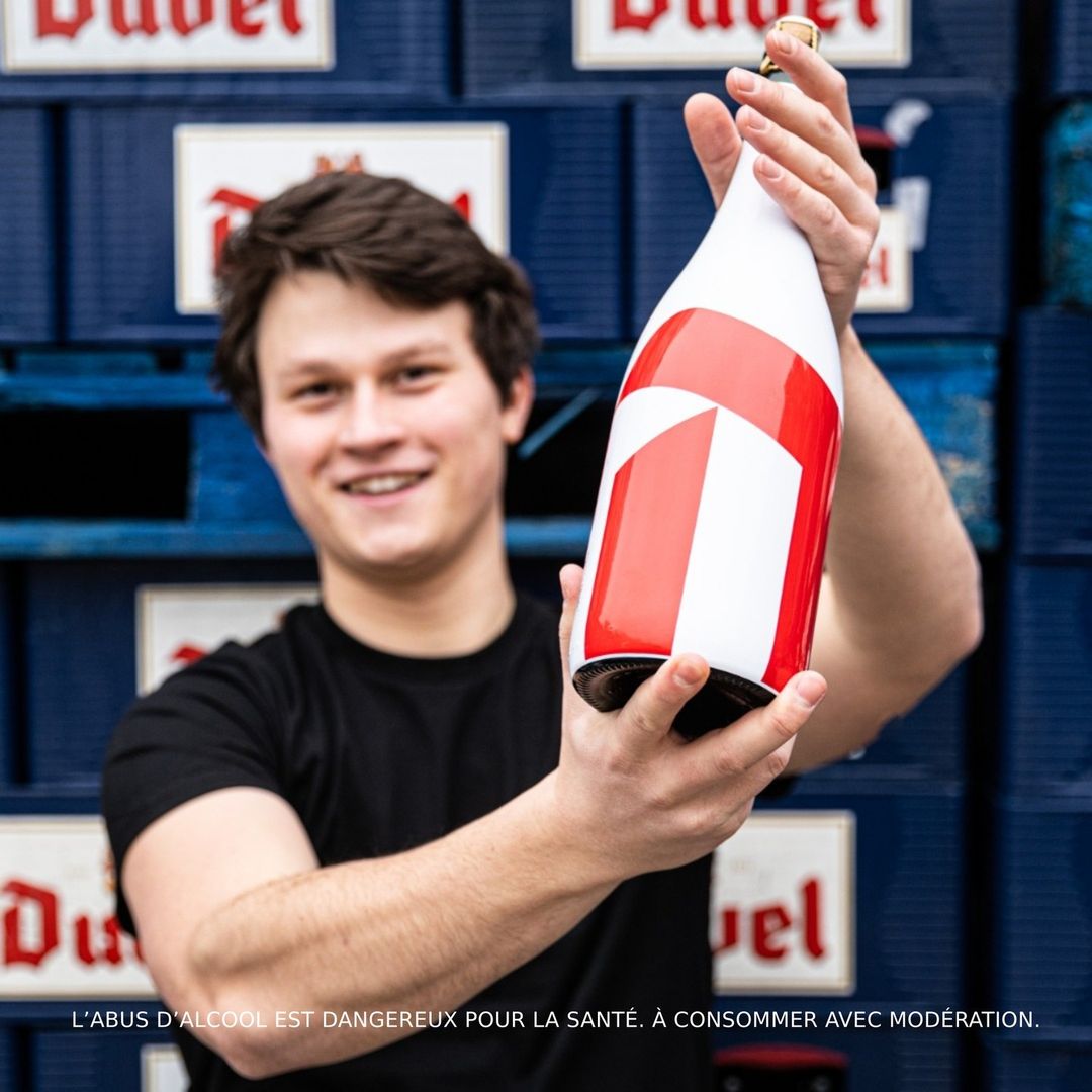 Les amoureux de bonne bière ont de quoi prolonger l’apéritif avec ce Magnum (1,5 l) de Duvel, la bière belge historique. Avec son format XL et sa belle couleur blanche festive, la bière blonde et sa mousse généreuse révèle une légère amertume, ainsi que des arômes rares et sophistiqués, résultant d’un long processus de maturation. A accompagner de grilled cheese au comté et jambon truffé pourquoi pas ! // Lovers of good beer have something to prolong the aperitif with this Magnum (1.5 l) of Duvel, the historic Belgian beer. With its XL format and its beautiful festive white color, the blonde beer with its generous head reveals a slight bitterness, as well as rare and sophisticated aromas, resulting from a long maturation process. To be served with grilled cheese with comté and truffled ham, why not !