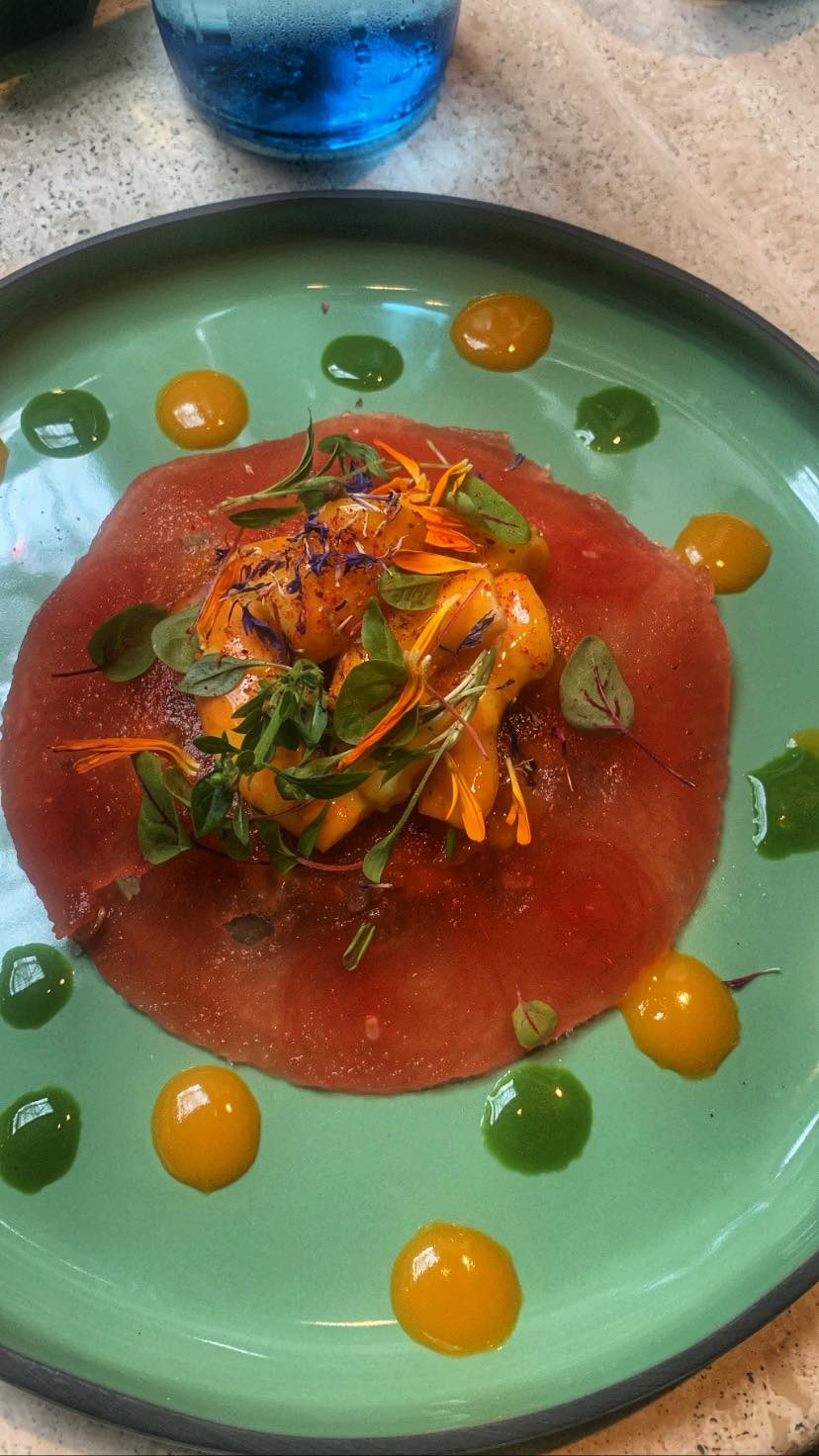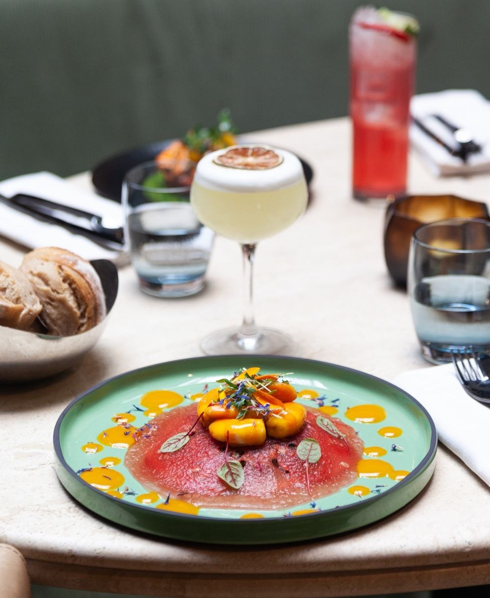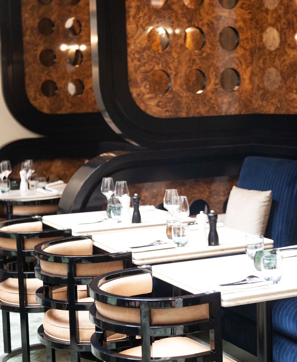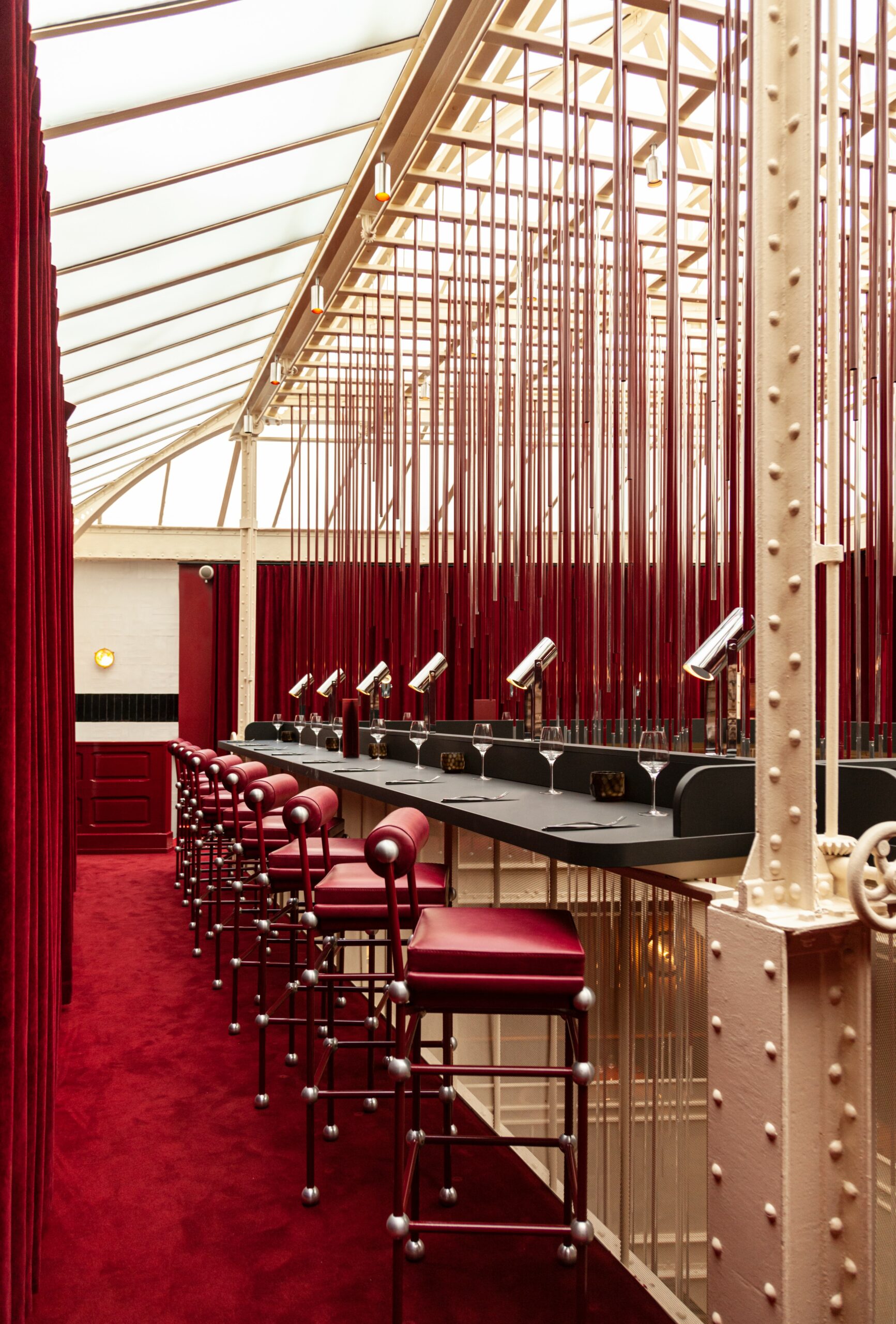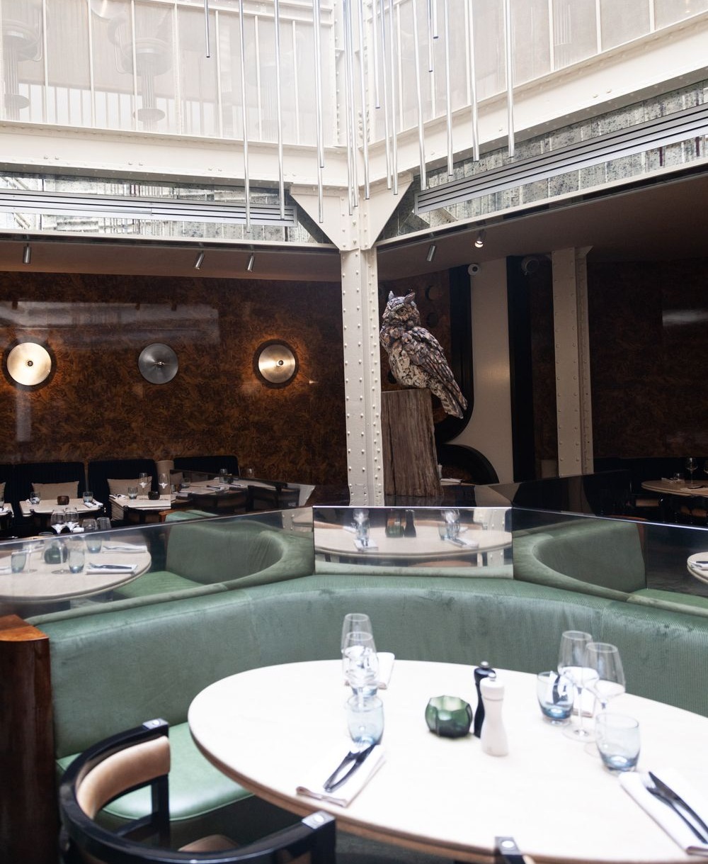 C’est l’une des salles de restaurants les plus belles de Paris, située en plein cœur du Marais, face au Carreau du Temple qui accueille certains des défilés les plus prestigieux durant la Fashion week. En clin d’œil à son ancien nom, « Les Chouettes », le restaurant se réinvente et devient « Grand Duc » sous l’impulsion de son propriétaire Thibault Vidalenc. On est fans de cet espace extraordinaire aux structures style Eiffel sous une majestueuse verrière où s’empilent les mezzanines d’étage en étage, effet Waou garanti dès les portes franchies. Au rez-de-chaussée, une salle à manger Art Déco d’un chic fou, très conviviale avec ses larges banquettes en cercle dans l’esprit d’un club privé. Au dernier étage, une mezzanine sexy à souhait, tout de rouge vêtue en référence au bar à vin qu’on y retrouve. Un lieu d’exception pour une dégustation inoubliable autour d’un magnifique comptoir très moderne, propice aux soirées prolongées. On y retrouve une centaine de références triées sur le volet parmi toutes les régions de France, à déguster autour de fromages affinés par Madame Quatrehomme, mezze, Huitres « Perle blanche » et sushis, sashimis, california, préparés minute au comptoir. Sans oublier la terrasse et le bar à cocktails que l’on aperçoit déjà depuis la rue, avec son esprit new-yorkais, ses lampes 70’s et ses assises hautes en cuir cognac. Côté carte, c’est Hervé Nepple qui nous régale de créations fraîches, raffinées mais généreuses, comme il en avait déjà l’habitude au restaurant gastronomique La Maison Blanche de l’avenue Montaigne. Au déjeuner comme au dîner, on se fait plaisir avec les suggestions de ce Chef discret, passionné de randonnée, rendant hommage à la nature dans ses assiettes travaillées. La fraîcheur des gambas mêlée à celle du melon, les poissons frais parfaitement cuits, les légumes gourmands, les accompagnements régressifs entre purées et accras Maisons, la Pavlova signature… : une cuisine unique qui vaut le détour, ode à la fraîcheur en été, plus réconfortante l’hiver. En bref, une adresse mêlant gastronomie à architecture qui saura vous surprendre. Des soirées festives et musicales sont également prévues. A booker les yeux fermés. // It is one of the most beautiful restaurants in Paris, located in the heart of the Marais, opposite the Carreau du Temple, which hosts some of the most prestigious fashion shows during Fashion Week. In a nod to its former name, « Les Chouettes », the restaurant has reinvented itself and become « Grand Duc » under the impetus of its owner Thibault Vidalenc. We are fans of this extraordinary space with its Eiffel-style structures under a majestic glass roof where mezzanines are stacked from floor to floor, a guaranteed wow effect as soon as you walk through the doors. On the ground floor, a chic Art Deco dining room, very convivial with its large circular benches in the spirit of a private club. On the top floor, a sexy mezzanine, all dressed in red in reference to the wine bar that can be found there. An exceptional place for an unforgettable tasting around a magnificent, very modern counter, ideal for long evenings. You will find a hundred or so carefully selected references from all the regions of France, to be tasted around cheeses matured by Madame Quatrehomme, mezze, « Perle blanche » oysters and sushi, sashimi, california, prepared at the counter. Not forgetting the terrace and cocktail bar that you can already see from the street, with its New York spirit, its 70’s lamps and its high seats in cognac leather. As for the menu, Hervé Nepple will treat us to fresh, refined but generous creations, as he was already used to doing at the gastronomic restaurant La Maison Blanche on Avenue Montaigne. At lunch or dinner, you can enjoy the suggestions of this discreet chef, who is passionate about hiking and pays homage to nature in his elaborate dishes. The freshness of the gambas mixed with that of the melon, the perfectly cooked fresh fish, the gourmet vegetables, the regressive accompaniments between purées and accras Maisons, the signature Pavlova… A unique cuisine that is worth the diversions, an ode to freshness in summer, more comforting in winter. In short, an address combining gastronomy and architecture that will surprise you. Festive and musical evenings are also planned. Book it with your eyes closed.