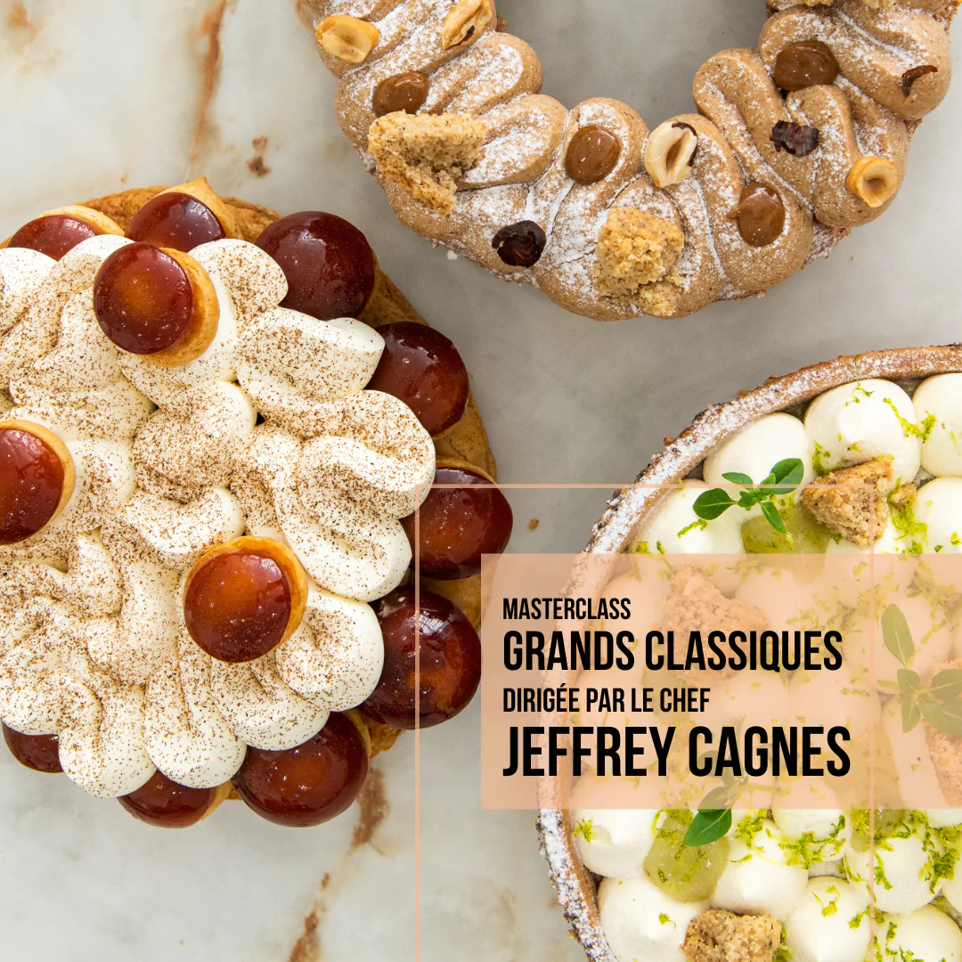 Le célèbre Chef pâtissier passé par la Maison Stohrer, Thoumieux, le Flandrin ou encore le Palais de Tokyo propose désormais de partager son savoir et ses astuces gourmandes le temps de Masterclasses. Jeffrey Cagnes dévoile ses secrets, gestes et astuces au sein de l’atelier « Du Geste à l’Emotion » en plein cœur de Paris. Au programme, la (re)découverte des grands classiques qui ont marqué son parcours : tarte citron, fraisier, saint-honoré… Organisées deux fois par mois, les mardis de 14h à 16h30, les masterclasses sont limitées à 12 personnes. Le Chef propose des créations en fonction de la saisonnalité et des temps forts de l’année (Noël, Épiphanie, Pâques, …). A remporter à la maison évidemment et à offrir à ses proches sous forme de carte cadeau ! // The famous pastry chef, who has worked at Maison Stohrer, Thoumieux, Flandrin and the Palais de Tokyo, is now offering to share his knowledge and gourmet tips during masterclasses. Jeffrey Cagnes reveals his secrets, gestures and tricks at the « Du Geste à l’Emotion » workshop in the heart of Paris. On the programme, the (re)discovery of the great classics that have marked his career : lemon tart, strawberry cake, saint-honoré… Organised twice a month, on Tuesdays from 2pm to 4.30pm, the masterclasses are limited to 12 people. The Chef proposes creations according to the season and the highlights of the year (Christmas, Epiphany, Easter, …). To be taken home of course and to offer to friends and family in the form of a gift card !