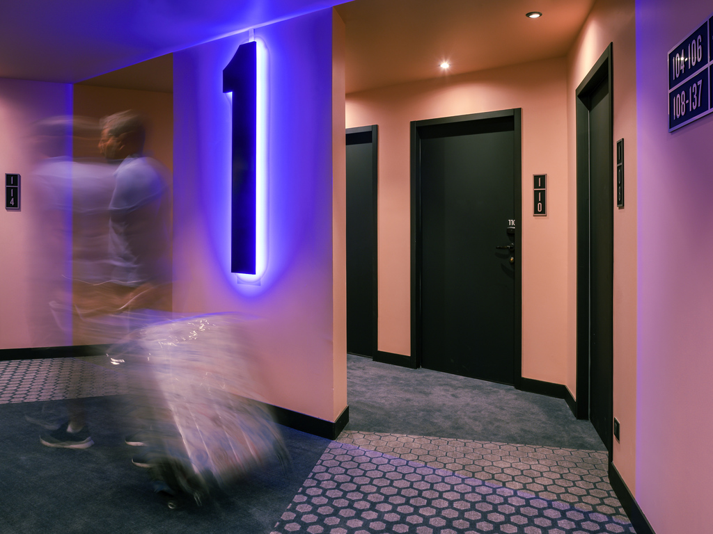 Une adresse design et pratique – Quartier des affaires oblige, l’offre environnante est souvent tristounette, conçue pour les travailleurs de passage. Le TRIBE bouscule les codes et allie un design moderne et industriel à des chambres ultra-pratiques. On aime l’esprit « Social Hub », les couleurs pastel omniprésentes, les grands espaces où se poser pour travailler et grignoter, le joli bar, le jardin zen et sa terrasse végétalisée ou encore les terrasses de certaines chambres donnant sur les impressionnantes tours de La Défense pour un effet Gotham City des plus séduisants. On est également fans des néons géants indiquant chaque étage, décor instagrammable par excellence pour garder un bon souvenir de votre séjour. Une réussite signée par l’architecte Thierry d’Istria// A design and practical address – In the business district, the surrounding offer is often drab, designed for passing workers. The TRIBE overturns the codes and combines modern and industrial design with ultra-practical rooms. We like the « Social Hub » spirit, the omnipresent pastel colors, the large spaces where you can work and snack, the pretty bar, the Zen garden and its planted terrace or even the terraces of some rooms overlooking the impressive towers of La Défense for a most seductive Gotham City effect. We are also fans of the giant neon signs on each floor, the ultimate Instagrammable decor to keep a good souvenir of your stay. A success signed by the architect Thierry d’Istria.