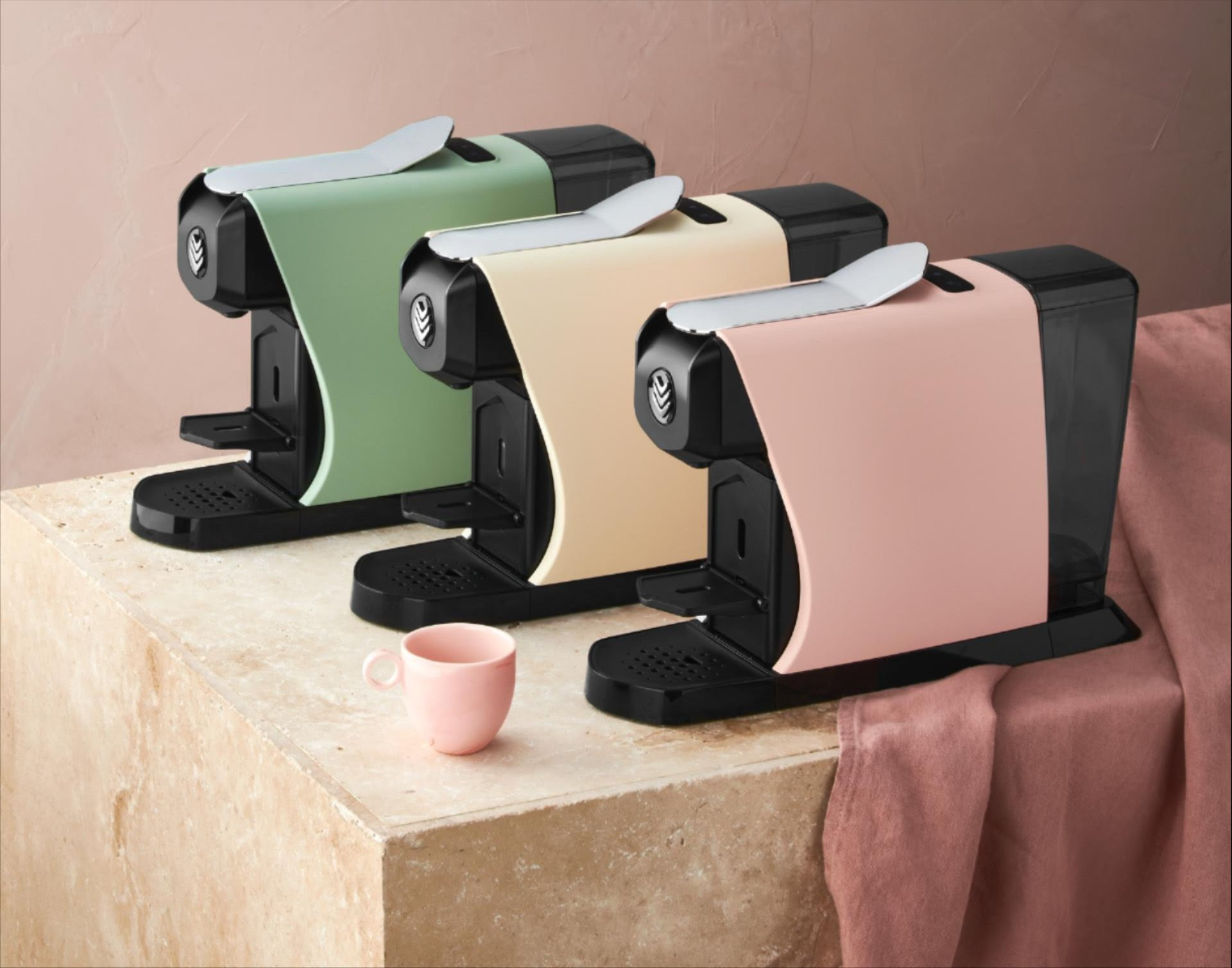Machine à expresso Eoh de Malongo, made in France et écoresponsable, désormais disponible en 10 nouvelles couleurs. Vert tilleul, rose pastel, crème, bleu nuit, kaki, rouge satinée… – 119,90€ –