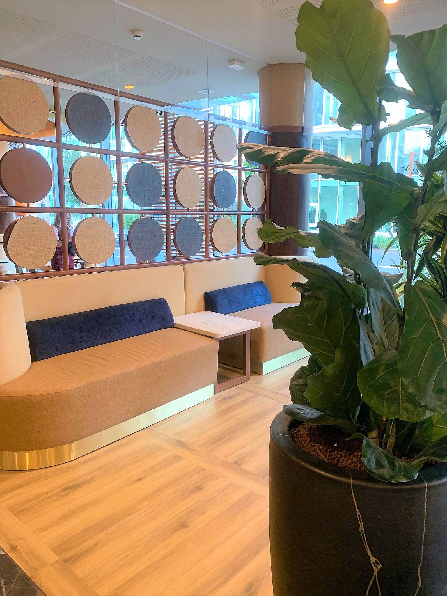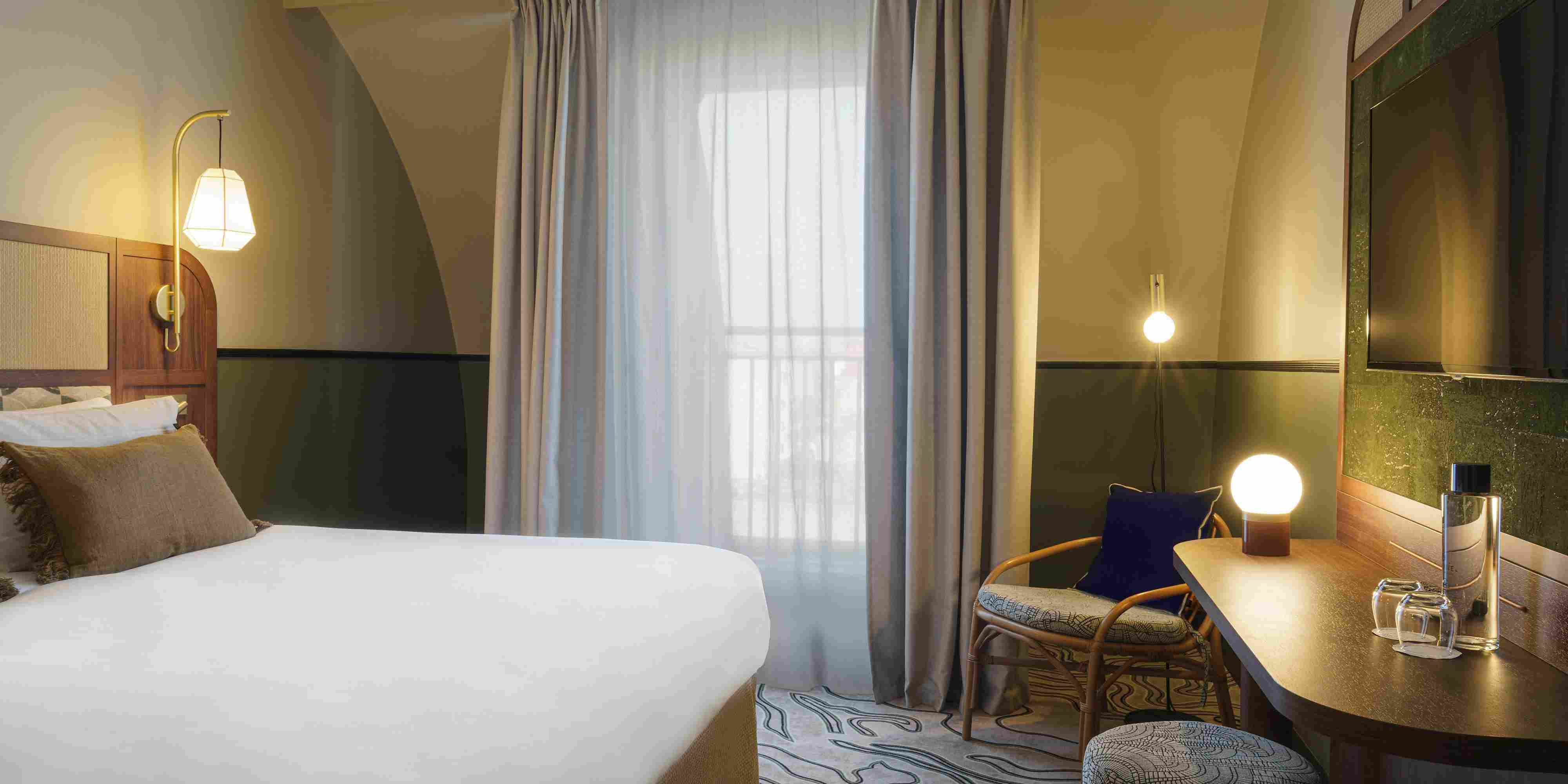 Clichy se renouvelle de jour en jour pour devenir l’un des quartiers les plus en vue du moment entre sièges de grands groupes, nouveaux hôtels et restaurants. A deux pas du 17ème arrondissement parisien et face au majestueux Tribunal Judiciaire de Paris, le tout nouveau VOCO est l’hôtel qui va vous réconcilier avec le périphérique parisien ! On est fans de sa structure imposante en angle, façon proue de bateau dans laquelle se nichent de superbes chambres ou suites panoramiques à l’américaine. On aime aussi son design très moderne par l’architecte Oscar Lucien Ono avec ses touches d’or, de vert d’eau et de bleu éparpillées entre les murs, les coussins ou encore les luminaires. Familiales et spacieuses ou plus intimistes en dernier étage avec leurs balcons sur les toits, 264 chambres très confortables vous attendent avec leurs lits larges et moelleux, moquettes graphiques-chic et leurs salles de bains à l’imprimé marbré. On ne se lasse pas de la vue des chambres en angle, de jour comme de nuit, pour un dépaysement garanti. La gastronomie n’est pas en reste grâce au restaurant de l’hôtel, une adorable brasserie tropicale du nom de « Romcoco » dont les plats signatures sont également proposés en room-service. Paris Society Consulting en a imaginé le concept et le Chef Samuel Deruschi y propose des créations terre-mer d’inspiration latines entre délicieux tenders de poulet à picorer, gaufre à l’avocat, ceviche de daurade royale, tataki de bœuf, burger signature avec ses frites de patate douce parsemées de parmesan, entrecôte chimichurri, houmous au zaatar, l’une des meilleures salades César de la capitale et un Baba au rhum à la vanille et touches exotiques. Sans oublier le bar à cocktails avec plus de 40 références de rhums ! Cerise sur le gâteau, une salle de fitness baignée de lumière vous attend au 8ème étage avec une vue imprenable sur la butte de Montmartre. Notre nouvelle valeur sûre. // Clichy is becoming one of the hottest districts with the headquarters of major groups, new hotels and restaurants. Just a stone’s throw from the 17th arrondissement and opposite the majestic Paris Courthouse, the brand new VOCO is the hotel that will reconcile you with the Paris ring road ! We’re big fans of its imposing angled structure, reminiscent of the prow of a ship, which houses some superb American-style panoramic rooms and suites. We also love the very modern design by architect Oscar Lucien Ono, with touches of gold, green and blue scattered around the walls, cushions and light fittings. Spacious family rooms or more intimate rooms on the top floor with their rooftop balconies, 264 very comfortable rooms await you with their wide, soft beds, graphic-chic carpets and marble-print bathrooms, and you’ll never tire of the view from the angled rooms, day or night, for a guaranteed change of scenery. The hotel’s restaurant, an adorable tropical brasserie called ‘Romcoco’, also offers room service for its signature dishes. Paris Society Consulting came up with the concept and Chef Samuel Deruschi offers Latin-inspired land and sea meals, including delicious chicken tenders, avocado waffles, sea bream ceviche, beef tataki, a signature burger with sweet potato fries sprinkled with parmesan, chimichurri rib steak, zaatar hummus, one of the best Caesar salads in the capital and a vanilla rum Baba with exotic touches. Not forgetting the cocktail bar with over 40 different rums ! The icing on the cake is a light-filled fitness room on the 8th floor, with a breathtaking view of the Montmartre hilltop. Our new sure place.