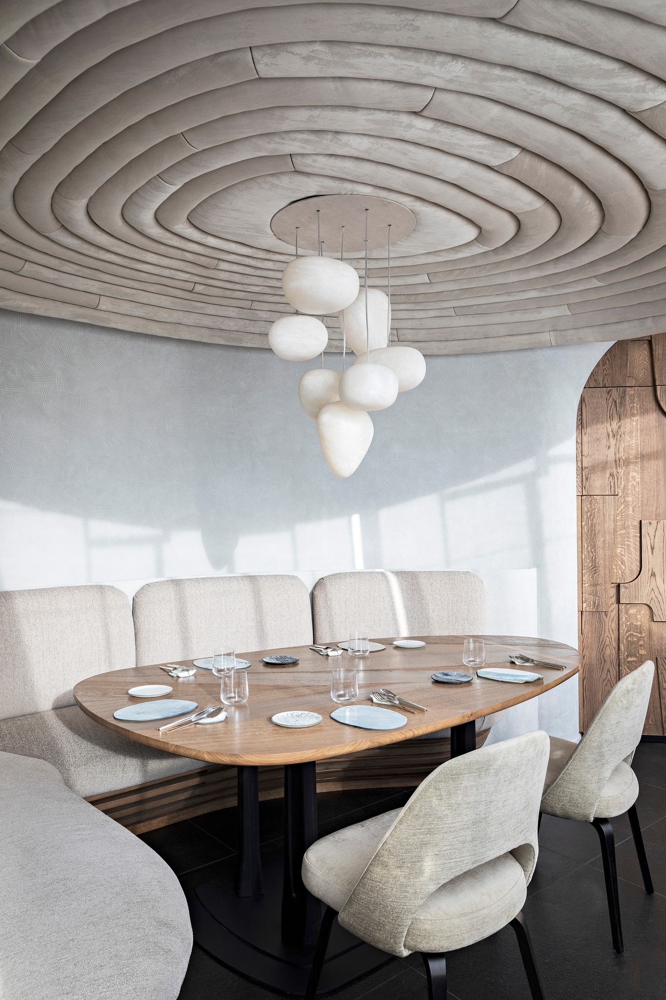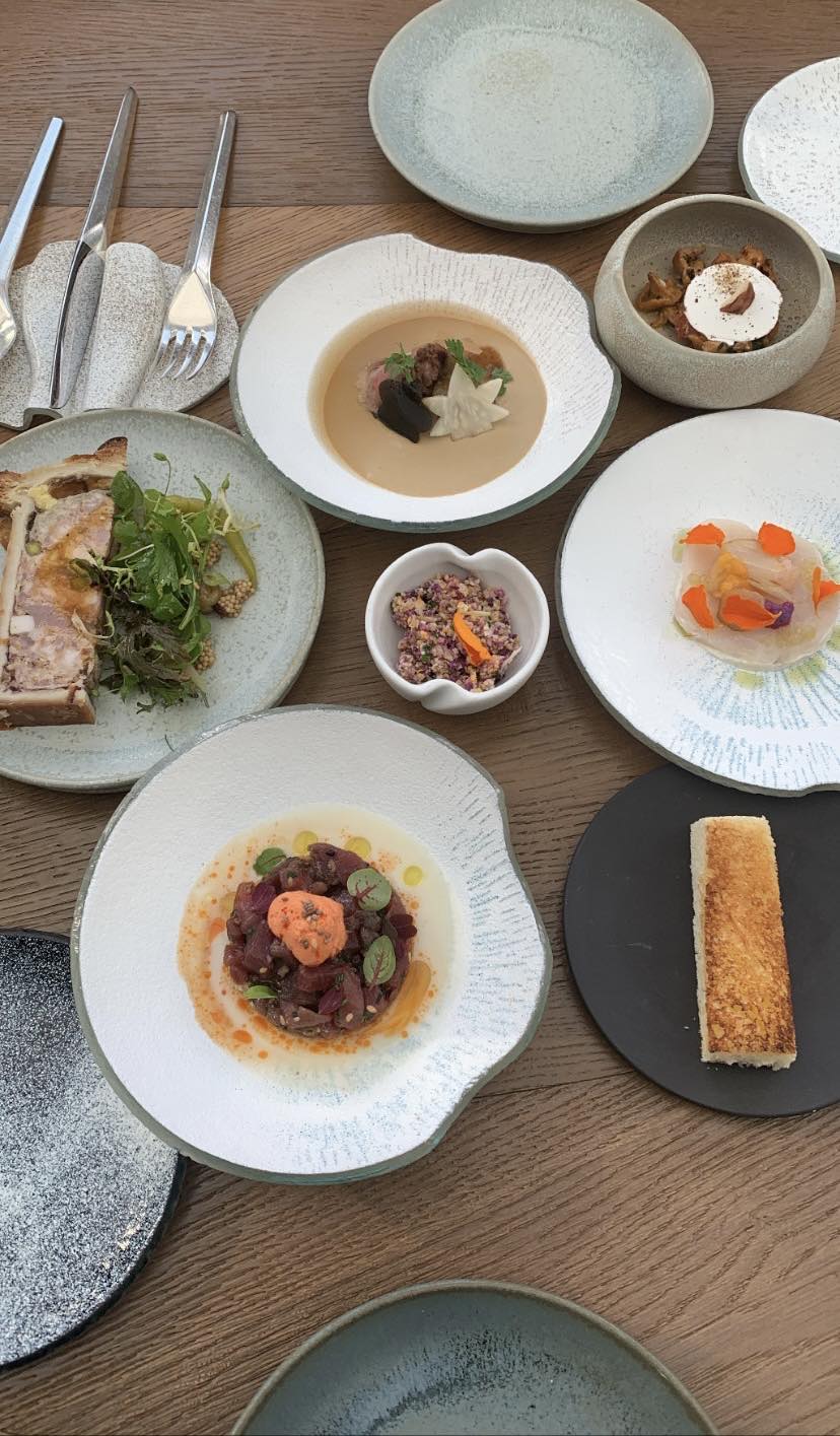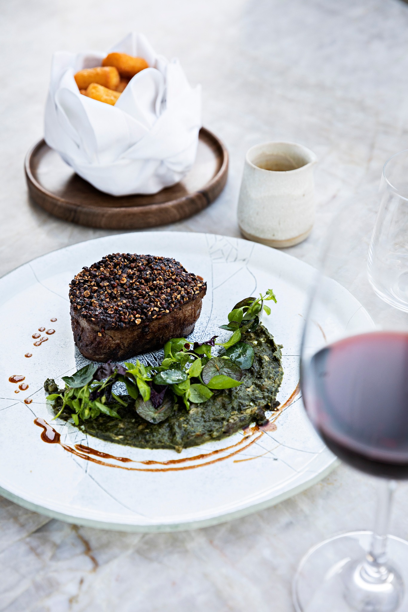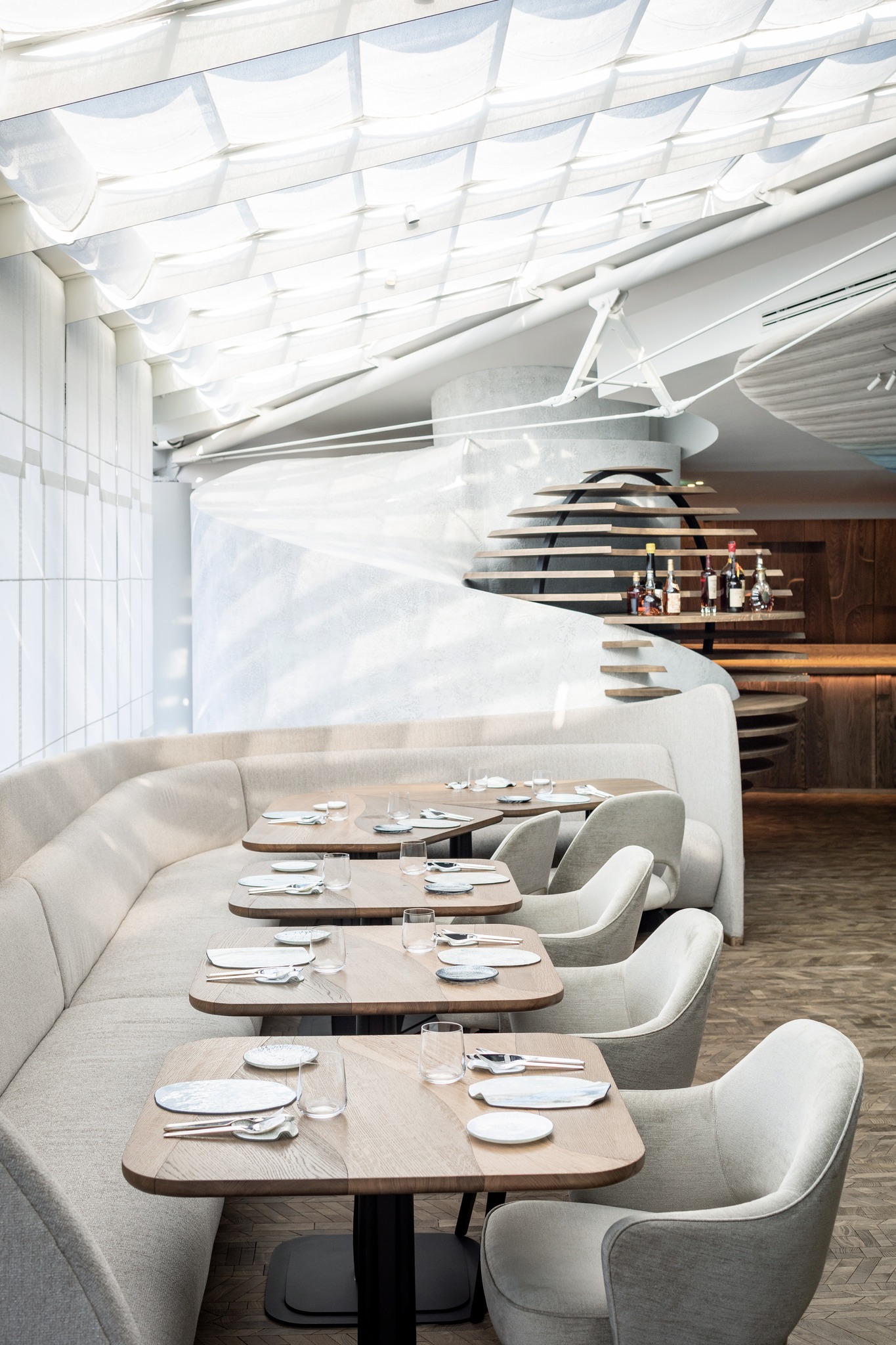 S’offrir un déjeuner ou un dîner gastronomique au cœur du Triangle d’Or parisien, c’est la promesse d’une parenthèse inoubliable en amoureux, en famille ou entre amis. Pour une expérience mémorable, on réserve une table au 39V, le superbe cocon perché sur les toits de l’avenue George V du Chef Frédéric Vardon. Ce Chef renommé, fils de charcutiers-traiteurs et compagnon de route d’Alain Ducasse, sait comment sublimer les produits frais et nobles du terroir français au sein de ce restaurant confidentiel occupant tout le sixième (dernier) étage. La quête des meilleurs produits respecte une démarche éthique à travers la maîtrise des circuits courts et la vérification des origines. Une attention toute particulière est apportée à la compréhension du lien entre environnement et production avec un focus sur l’attention du bien-être animal de la naissance à leur fin de vie. Côté design, il s’agit de l’un des plus jolis restaurants de Paris grâce au talent de Raphaël Navot dont on retrouve les codes dès le sas d’entrée avant de s’engouffrer dans l’ascenseur qui nous mènera au spectaculaire dernier étage. Comme en apesanteur, la salle de restaurant fait face aux cuisines que l’on aperçoit à travers les baies vitrées, au même titre que la pointe de la Tour Eiffel : un magnifique spectacle panoramique de nuit ! On est fan de cet écrin façon boudoir, comme une arène baignée par la lumière naturelle, avec son parquet en bois de chez Oscar Ono, ses alcôves intimistes, ses murs semi-sphériques texturés bleu-grisés, ses banquettes sur-mesure habillées par la Maison Gohard, ses tables en chêne massif réalisées par la Maison Lefrançois, son bar imposant en bois texturé, sa cave à vin vitrée abritant plus de 2 000 bouteilles… Le restaurant dispose également d’une petite terrasse en teck pour fumer son cigare, siroter un cocktail original, un jus de cranberry infusé, ou pour les soirées privées à l’approche des beaux jours. Le chef Frédéric Vardon y a également conservé son jardin avec herbes variées, plantes aromatiques et quelques agrumes. Au menu, une gastronomie authentique, sincère, durable et réalisée dans le respect des traditions culinaires françaises : gourmande en toute simplicité. La plupart des entrées se déclinent en petit modèle ou dans un format hors d’œuvre de dégustation. Tous les mardis, un menu déjeuner est proposé selon les retours du marché, et pour les plus petites envies, des compositions froides dans l’esprit de grandes salades peuvent être suggérées. On aime aussi les gougères pour patienter, les accords de saison à l’image des alliances champignons/châtaignes/foie gras, les Saint-Jacques crues de Normandie, le tourteau de Boulogne-sur-mer, le filet de bœuf de race avec ses pommes Dauphine et sa sauce au poivre ou encore la pêche durable en fonction du retour des criées. Sans oublier les surprises, les trésors de nos régions dans la catégorie « Hors carte » : la chasse de plumes et de poils selon les arrivages ; un king crabe de casier à partager, un loup pour 3 à 4 convives simplement rôti à la broche… Côté desserts, le Chef prouve à nouveau l’étendue de son talent avec des soufflés incontournables (maïs doux/pamplemousse/pop corn), des glaces maison à se damner (pollen et praliné croustillant addictif par exemple), des « Parisiennes » maîtrisées (canelé, éclair au cacao, Paris-Brest) et autres gourmandises. Un véritable ovni. // A gourmet lunch or dinner in the heart of Paris’ Golden Triangle promises an unforgettable interlude for lovers, family or friends. For a memorable experience, book a table at Le 39V, Chef Frédéric Vardon’s superb cocoon perched on the rooftops of Avenue George V. This renowned chef, son of pork butchers and Alain Ducasse’s fellow traveler, knows how to best sublimate the fresh, noble products of the French terroir in this confidential restaurant occupying the entire sixth (top) floor. The quest for the finest produce is ethically sound, with a focus on short supply chains and verifying origins. Particular attention is paid to understanding the link between environment and production, with a focus on animal welfare from birth to end of life. In terms of design, this is one of the prettiest restaurants in Paris, thanks to the talent of Raphaël Navot, whose codes can be seen right from the entrance hatch before entering the elevator to the spectacular top floor. As if weightless, the dining room faces the kitchens, which can be seen through the bay windows, just like the tip of the Eiffel Tower : a magnificent panoramic view at night ! We love this boudoir-like setting, like an arena bathed in natural light, with its Oscar Ono wood flooring, intimate alcoves, blue-grey textured semi-spherical walls, made-to-measure banquettes by Maison Gohard, solid oak tables by Maison Lefrançois, imposing textured wood bar, glassed-in wine cellar housing over 2,000 bottles… The restaurant also boasts a small teak terrace where you can smoke your cigar, sip an original cocktail or infused cranberry juice, or enjoy a private evening as the sun comes out. Chef Frédéric Vardon has also preserved his garden with a variety of herbs, aromatic plants and a few citrus fruits. On the menu, authentic, sincere, sustainable gastronomy in keeping with French culinary traditions : gourmet and simplicity. Most starters are available in small or hors d’oeuvre tasting formats. Every Tuesday, a lunch menu is proposed according to market returns, and for smaller desires, cold compositions in the spirit of large salads can be suggested. Other highlights include gougères to tide you over, seasonal pairings such as mushrooms/chestnuts/foie gras, raw scallops from Normandy, Boulogne-sur-mer crab, filet of purebred beef with pommes Dauphine and pepper sauce, and sustainable fishing according to market returns. And let’s not forget