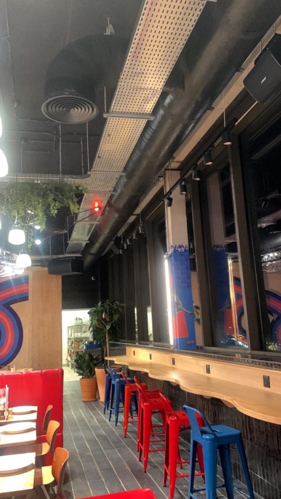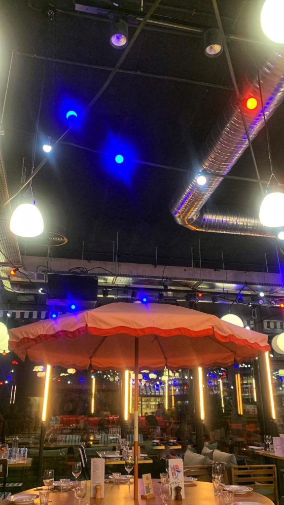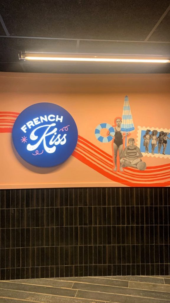 C’est au dernier étage du tout nouvel hôtel Eklo Paris Porte de Versailles que l’on retrouve French Kiss, un restaurant aux dimensions XXL ouvert du petit-déjeuner au dîner en passant par les brunchs du week-end. Accueillis par l’univers régressif d’une machine à pop-corn vintage et des bornes de jeux d’arcade, nous sommes immédiatement séduits par l’immense salle de restaurant combinant espace et convivialité dans le plus pur esprit des guinguettes. Au programme, un bar géant aux nombreuses références notamment en gin, des banquettes rouge façon « diner » américain, un comptoir et ses tabourets face aux baies vitrées pour un face à face avec la Tour Eiffel, des tables rondes et leurs parasols, de jolies chaises tressées dépareillées… Sans oublier la magnifique terrasse, ses guirlandes lumineuses et ses canapés où siroter un verre face à la Dame de fer. Coup de cœur également pour la jolie vaisselle et ses bisous. // On the top floor of the brand new Eklo Paris Porte de Versailles hotel, you’ll find French Kiss, an XXL-sized restaurant open for breakfast, dinner and weekend brunch. Welcomed by the regressive world of a vintage popcorn machine and arcade game terminals, we are immediately seduced by the immense restaurant room combining space and conviviality in the purest spirit of guinguettes. On the menu : a giant bar with a wide range of drinks, including gin, red American-style banquettes, a counter and stools facing the bay windows for a face-to-face view of the Eiffel Tower, round tables with parasols, pretty mismatched woven chairs… Not forgetting the magnificent terrace, with its string of lights and sofas where you can sip a drink facing the Iron Lady. We also love the pretty crockery and kisses.