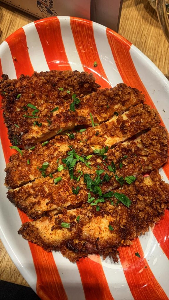 Ici, tout est fait Maison avec des produits frais sourcés français dans une démarche éthique en respectant les saisons pour se régaler du matin au soir. Le buffet du brunch vous attend les samedis et dimanches avec ses essentiels tandis que la carte du restaurant propose des classiques revisités pour tous les goûts. On partage des planches de fromages et charcuteries, des chipirons en persillade ou quelques huîtres avant d’attaquer un incroyable cordon bleu maison au poulet français plein air et comté. Autres réjouissances, des brochettes XXL à partager pour les amoureux de bœuf et sauce chimichurri. Frites maison, poulpe snacké, aile de raie au beurre blanc sont également de la partie. Côté sucré, on retrouve une des meilleures tatins de Paris avec ses pommes parfaitement confites et caramélisées ou encore de généreuses profiteroles. // Here, everything is homemade using fresh French produce sourced ethically and in keeping with the seasons, so you can enjoy your meal from morning till night. The brunch buffet awaits you on Saturdays and Sundays with its essentials, while the restaurant menu offers revisited classics to suit all tastes. You can share cheese and charcuterie boards, chipirons en persillade or a few oysters before attacking an incredible homemade cordon bleu with free-range French chicken and comté cheese. Other delights include XXL kebabs to share for beef and chimichurri sauce lovers. Homemade french fries, snacked octopus and ray fish with white butter are also on offer. On the sweet side, there’s one of the best tatins in Paris, with perfectly candied and caramelised apples, and generous profiteroles.