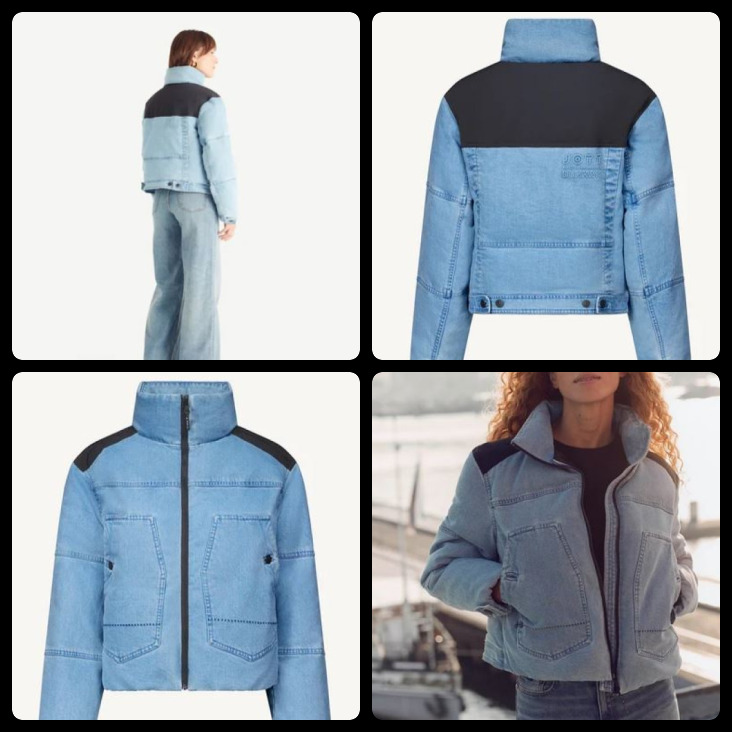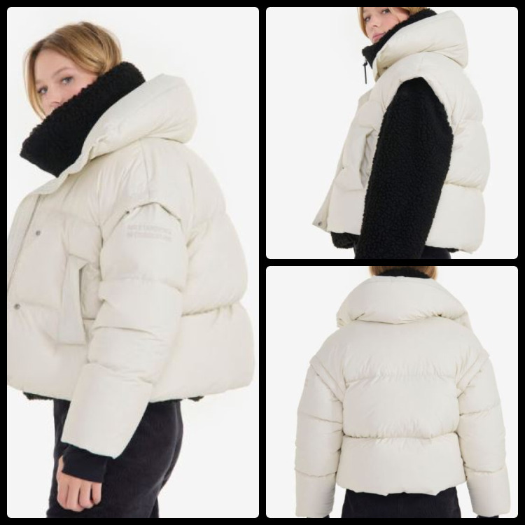 Doudoune « Haute Couture » – Modèle Delphine ski jacket – Tissu extérieur recyclé – Pare-neige amovible – Manchettes en tricot à l’intérieur des manches – Effet corset dans le dos -.