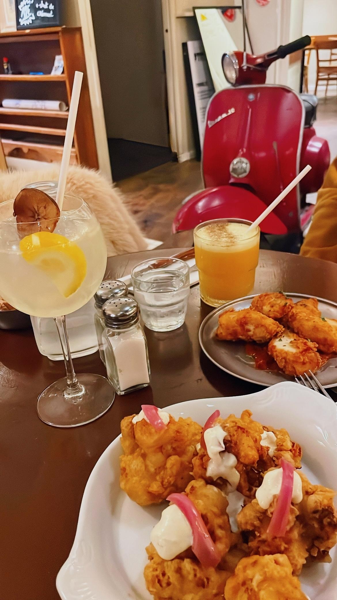 Dans les assiettes, du gourmand et du local : oubliez les poissons rares pêchés à des kilomètres ou les légumes et fruits hors saison. On se régale avec des choux-fleurs en tempura, des tenders à tremper dans un incroyable ketchup maison aux notes de cannelle, des croquettes de Mac & Cheese, le meilleur cordon-bleu de Paris ou encore des burgers généreux. On termine par un soyeux de citron avec sa crème chantilly mascarpone, une mousse au chocolat huile d’olive/fleur de sel ou une brioche perdue.