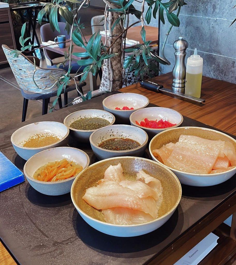 Avec ou sans coupe de Champagne, on profite des différents buffets et stands proposés par le Chef Alexandre Willaume, membre du Collège Culinaire de France et représentant d’une cuisine engagée, responsable et durable. Côté salé, on retrouve des charcuteries, différentes terrines, du saumon fumé, des fruits de mer (huîtres, grosses crevettes), du fromage et de nombreuses salades composées. Sans oublier le coin des plats chauds avec poulet rôti du dimanche, pommes grenaille, risotto de pâtes, saumon teriyaki, gyozas, tempuras, nems, œufs brouillés, saucisses et bacon.