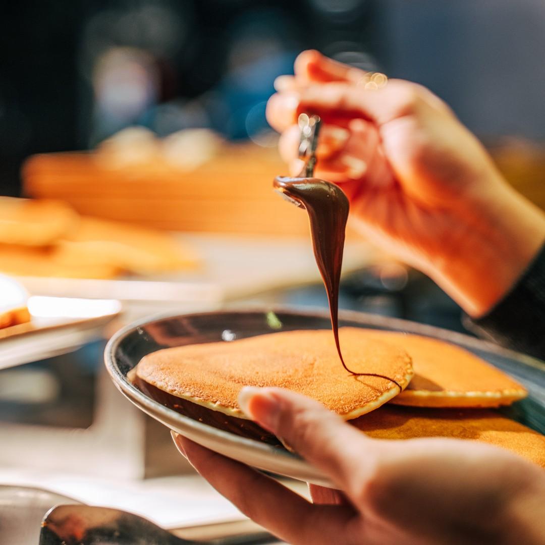 Avec ou sans coupe de Champagne, on profite des différents buffets et stands proposés par le Chef Alexandre Willaume, membre du Collège Culinaire de France et représentant d’une cuisine engagée, responsable et durable. Côté salé, on retrouve des charcuteries, différentes terrines, du saumon fumé, des fruits de mer (huîtres, grosses crevettes), du fromage et de nombreuses salades composées. Sans oublier le coin des plats chauds avec poulet rôti du dimanche, pommes grenaille, risotto de pâtes, saumon teriyaki, gyozas, tempuras, nems, œufs brouillés, saucisses et bacon.