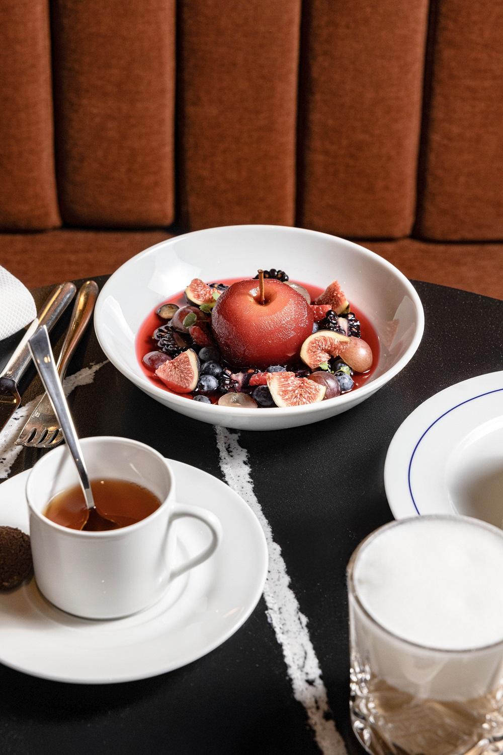 On est fans de son design chic et chaleureux façon jazz club où les tons beige et cognac dominent, entre alcôves aux confortables banquettes, bibliothèques remplies d’objets de voyage et de beaux livres sur le yachting, chevaux qui évoquent l’univers du polo, pilastres élégants et lumières tamisées. À la carte, une courte sélection fraîche, généreuse et de saison mêlant tradition Anglo-saxonne à raffinement français (ingrédients soigneusement sélectionnés en Bretagne et Normandie par exemple) par le Chef Damien Gomes, fidèle à l’établissement depuis 19 ans.